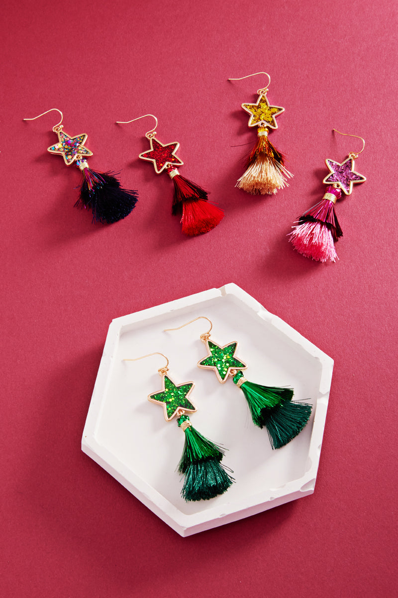 Expertly crafted and adorned with a 2.5 inch star and colorful tassel hooks, these earrings add a unique touch to any outfit. Made with high quality materials, they are lightweight and comfortable to wear. Perfect for adding a pop of color and personality to your look.