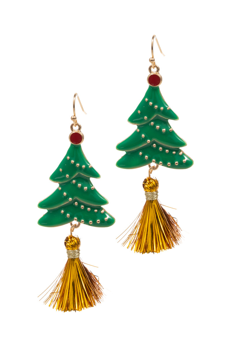 Christmas Tree Shaped Enamel Tassel Hook Earrings