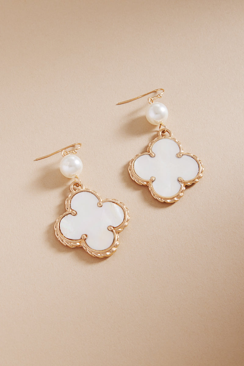 ntroducing our versatile and elegant 1.75-inch clover shaped shell hook earrings. Made with high quality materials, these earrings are perfect for any occasion. Their unique and delicate design will add a touch of sophistication to your outfit. Elevate your style with our stylish and timeless earrings.