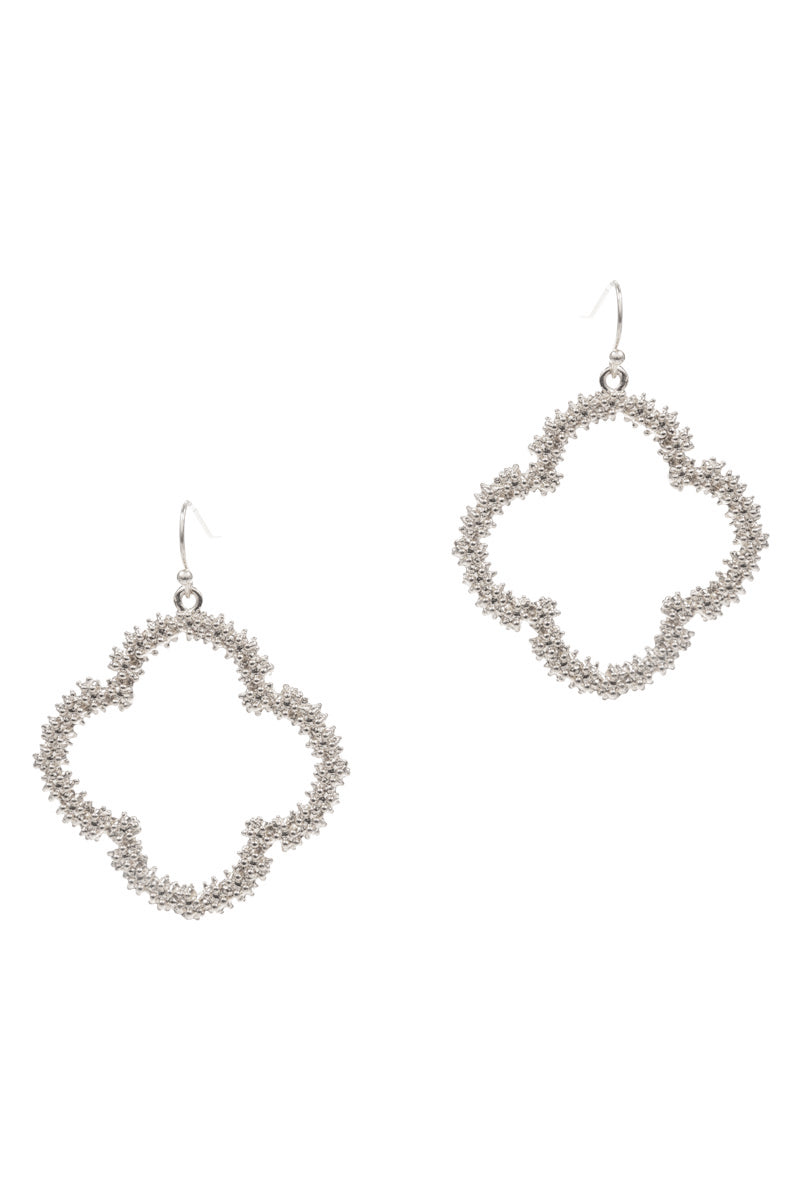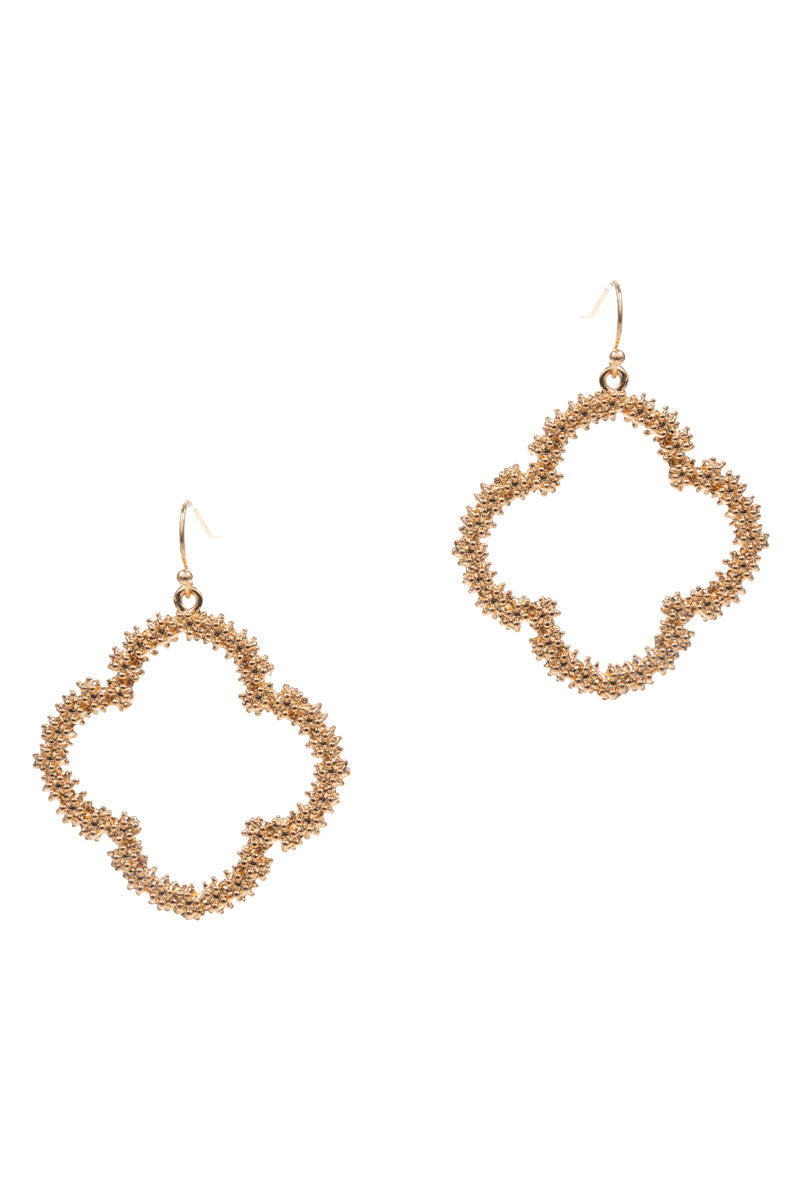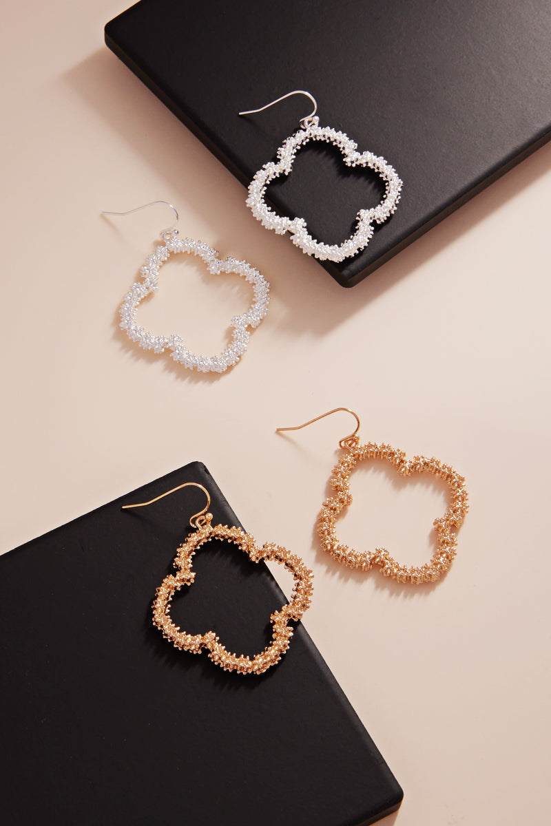 Elevate your style with these unique 2 inch clover-shaped textured metal hook earrings. Crafted with precision and adorned with intricate textures, these earrings are sure to make a statement.