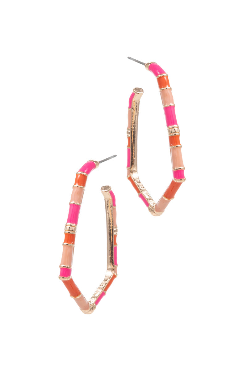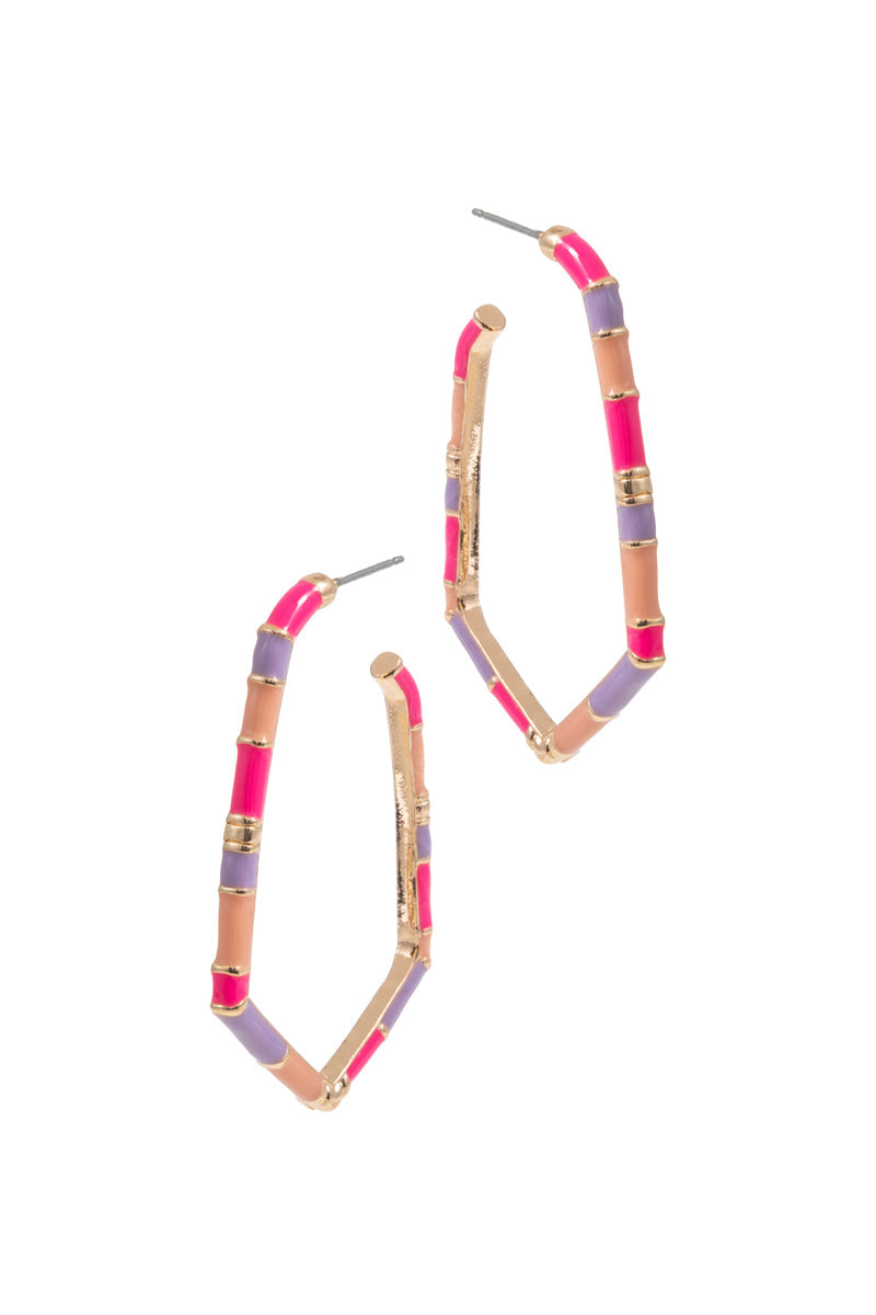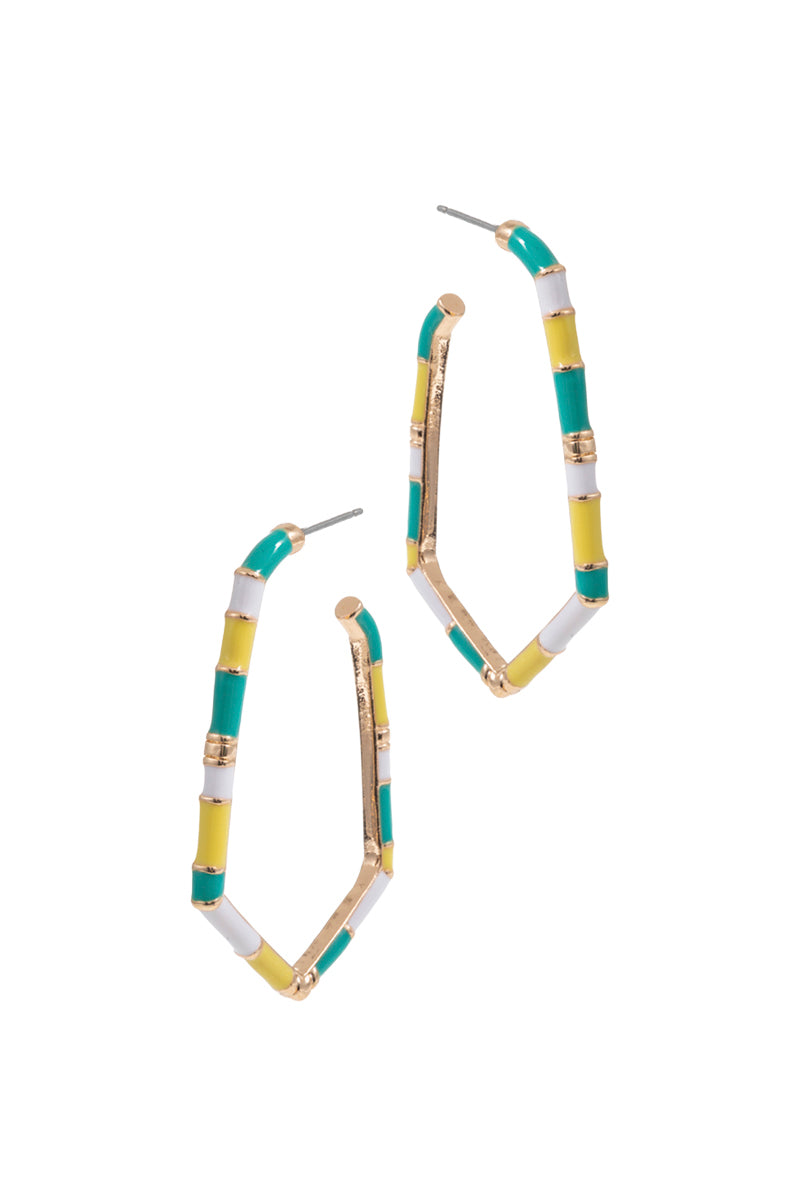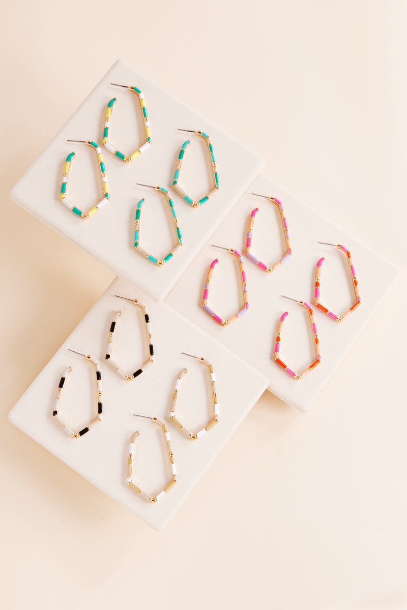 These 1.75 inch color block enamel hoop earrings are a stylish and versatile addition to any jewelry collection. With their bold color blocking design, these earrings are sure to make a statement. Made from quality materials, they are both durable and fashionable.