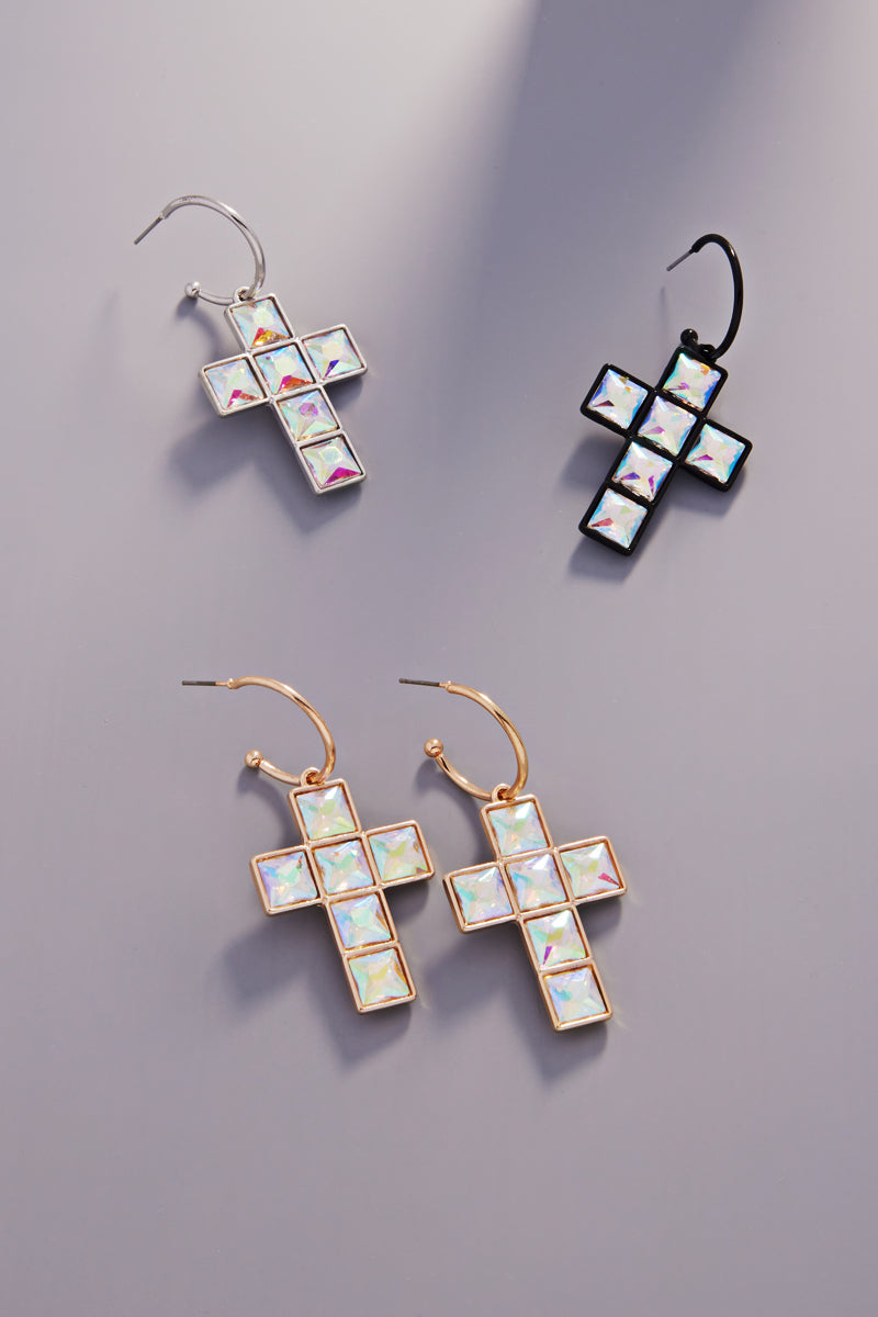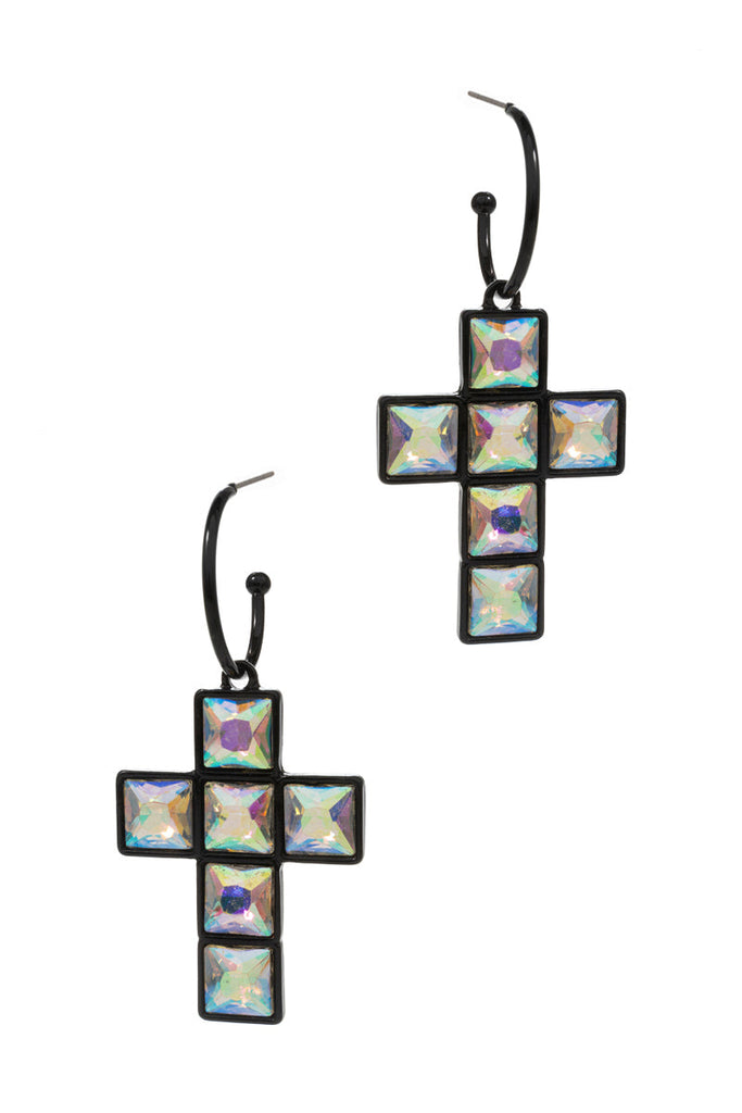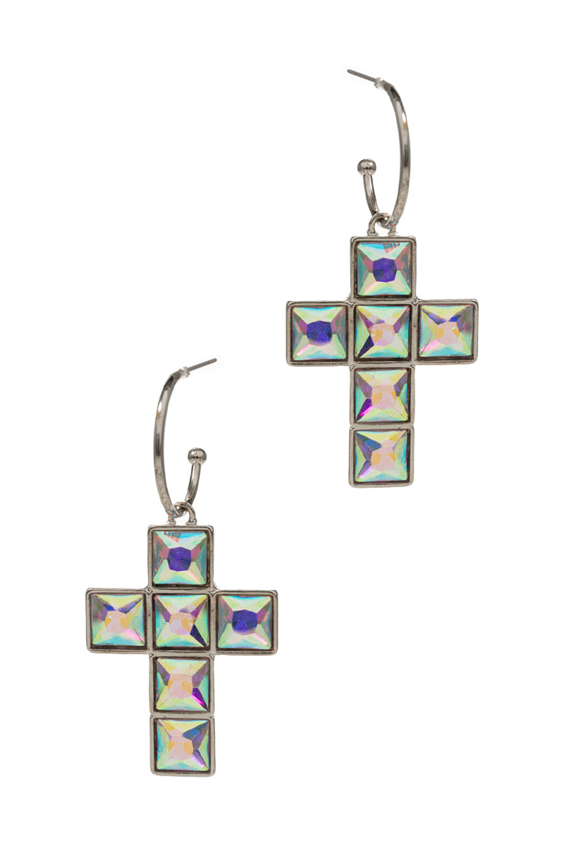 Expertly crafted for a polished and elegant look, these 2.5 inch cross-shaped rhinestone hoop earrings are a must-have accessory for any occasion.
