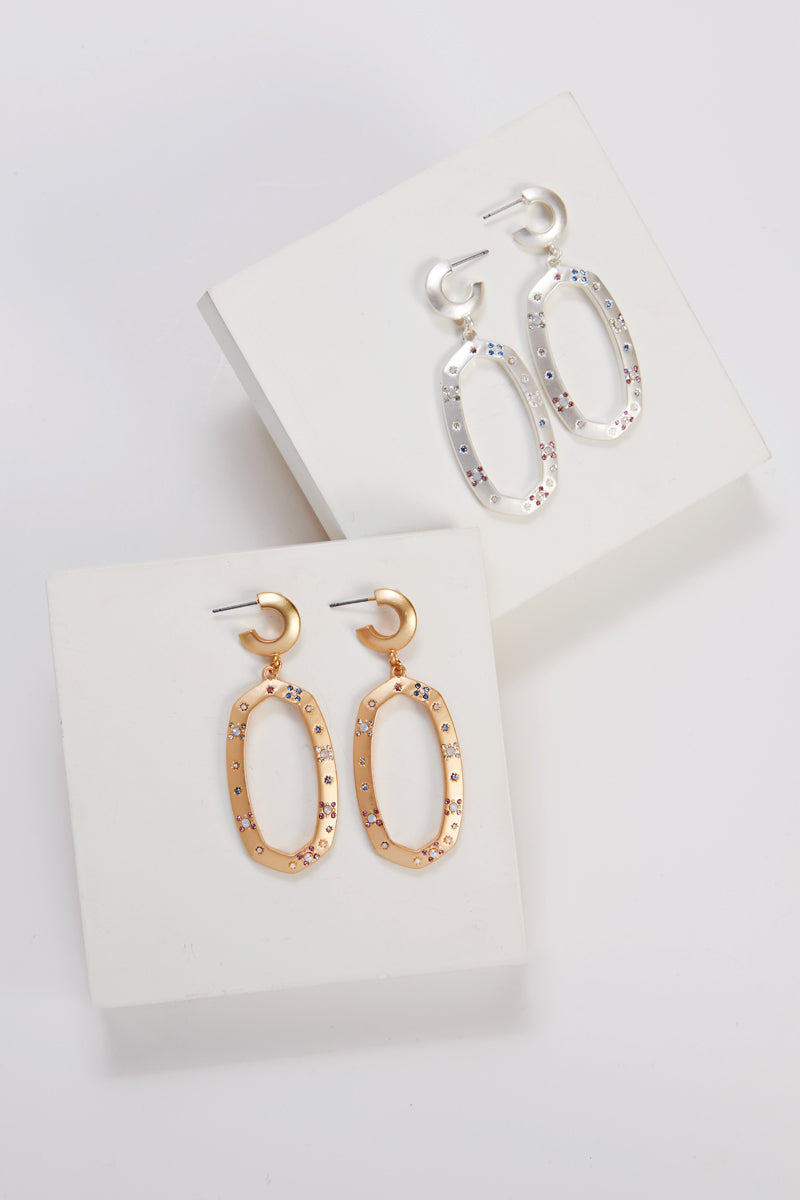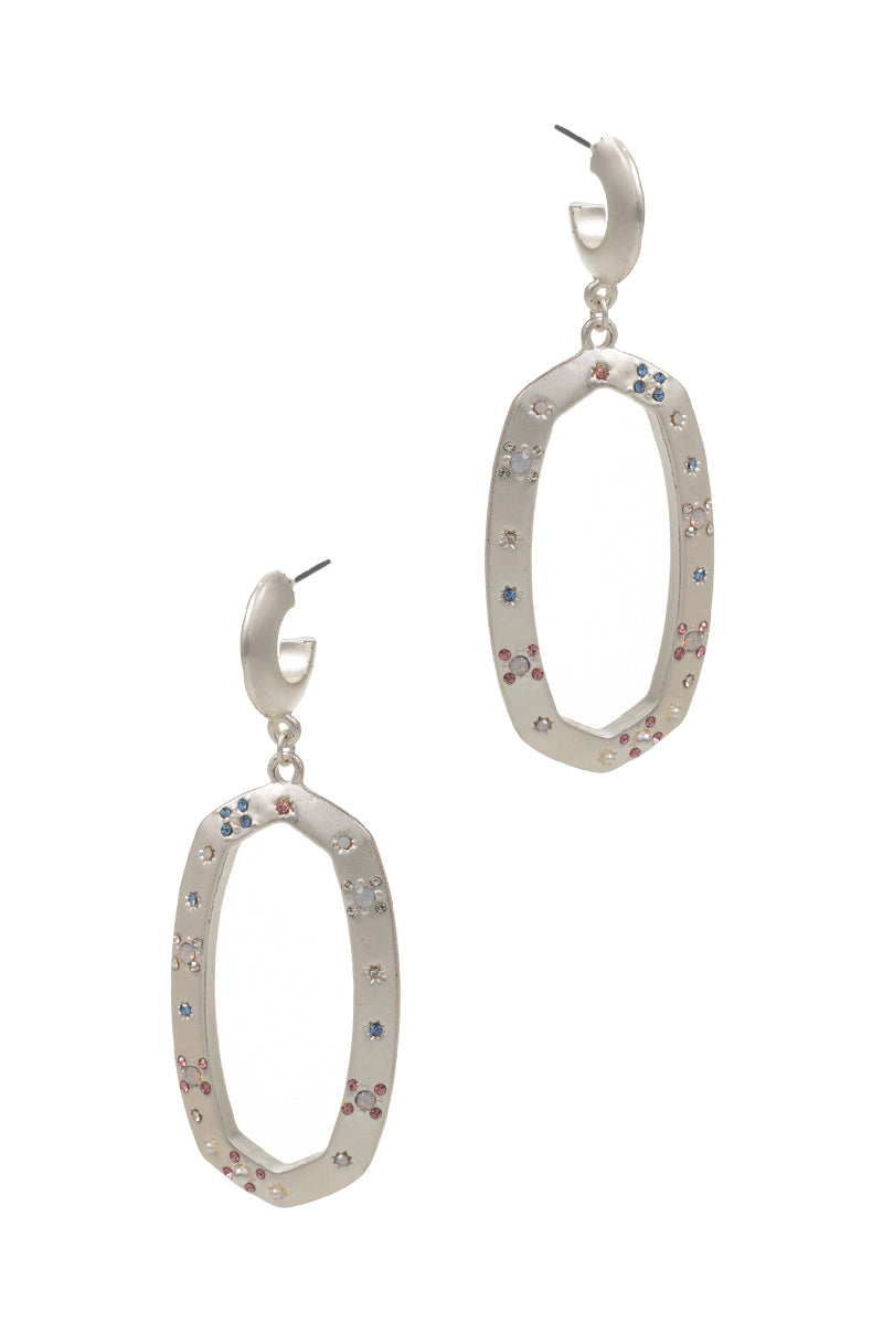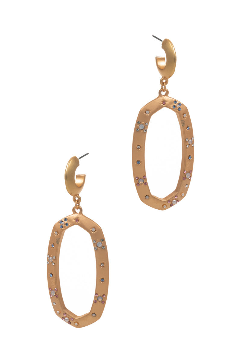 Dangle Hexagon Shaped Paved Metal Hoop Earrings