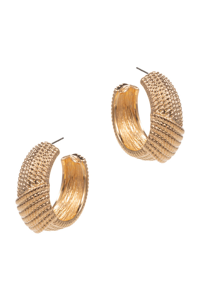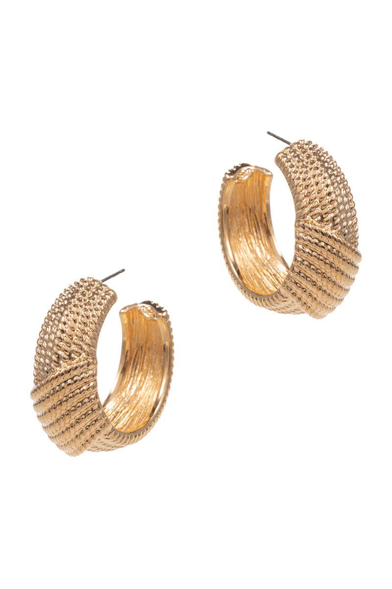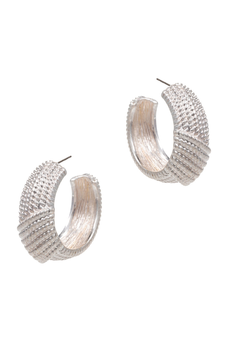 Detailed Dots Twist Metal Pin Hoop Earrings