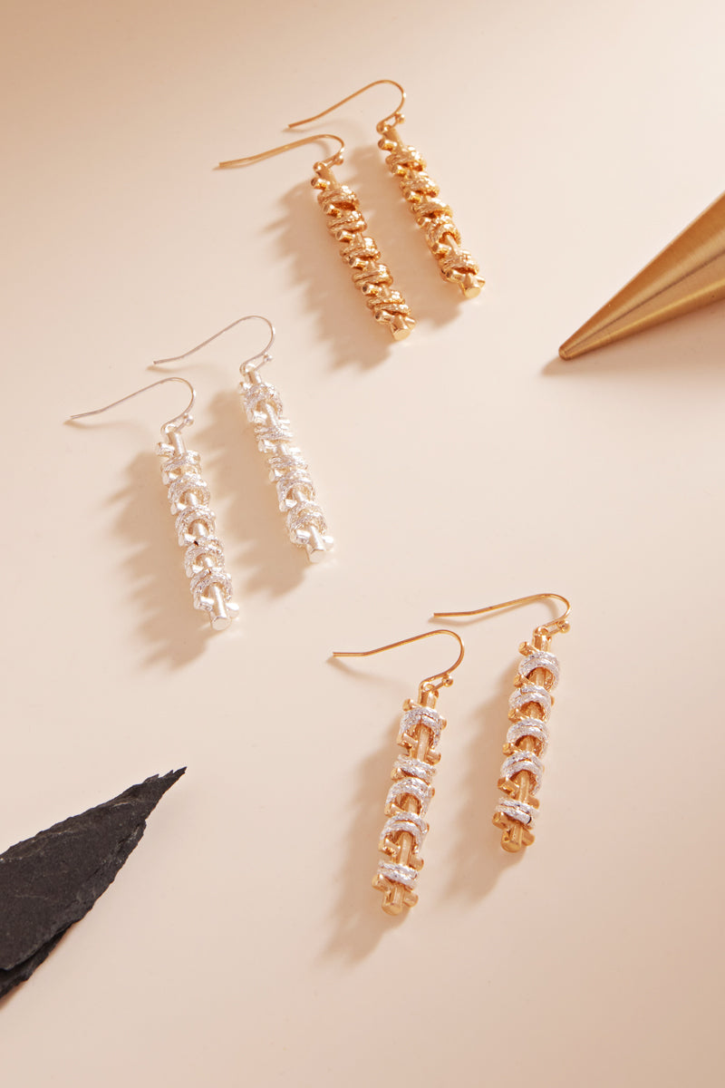 Diamond Cutted Wire Basic Metal Bar Hook Earrings