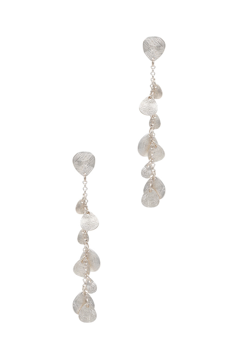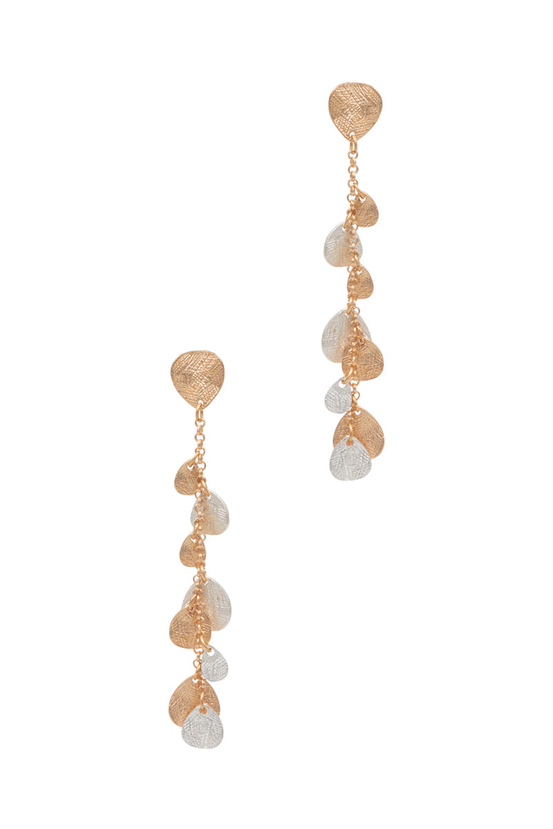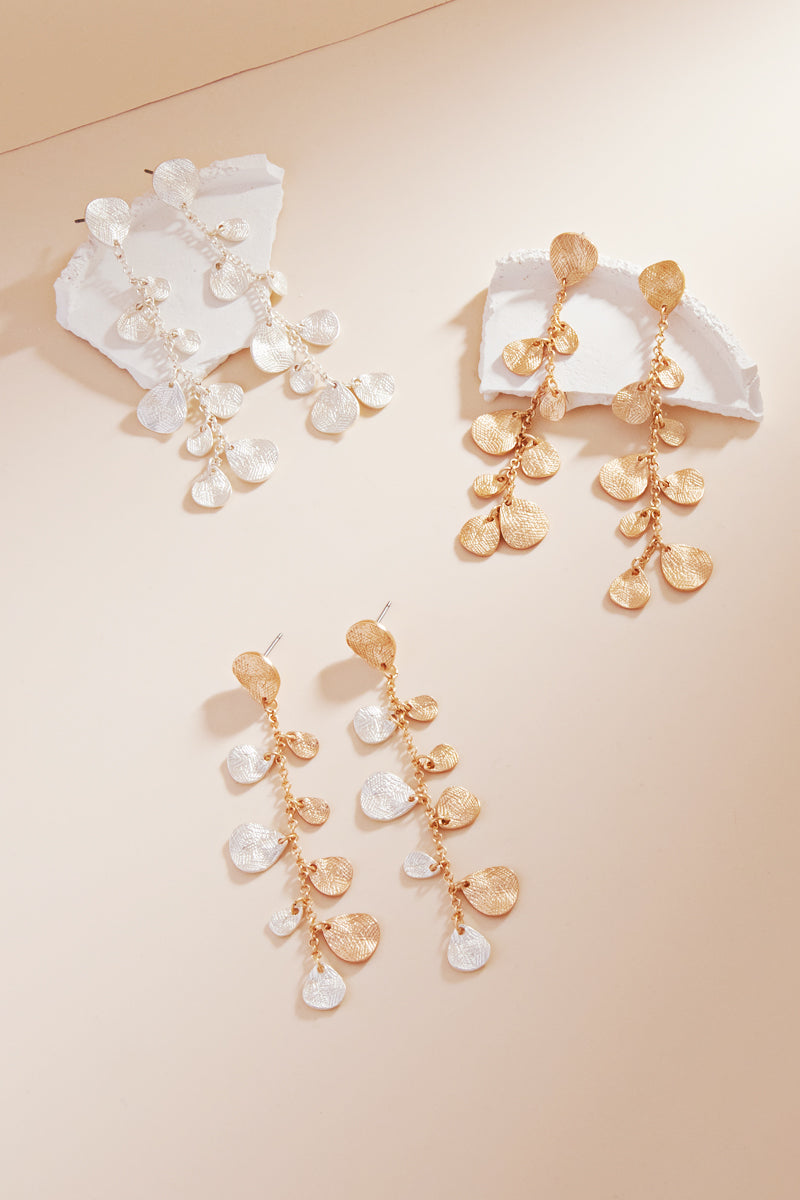 Expertly crafted with a 3" etched textured metal charm, these post earrings exude elegance and charm.