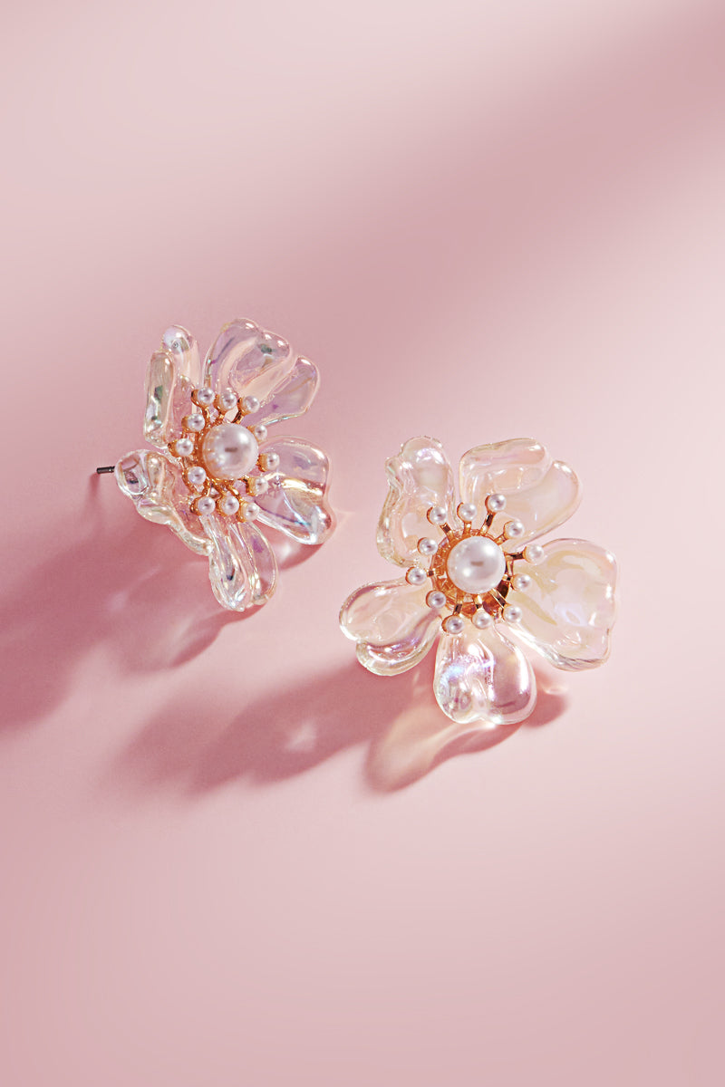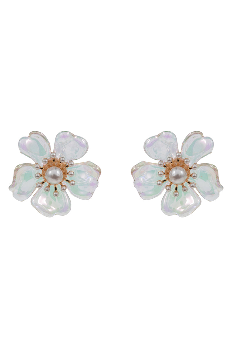 Flower Iridescent Acrylic W Pearl Post Eearrings