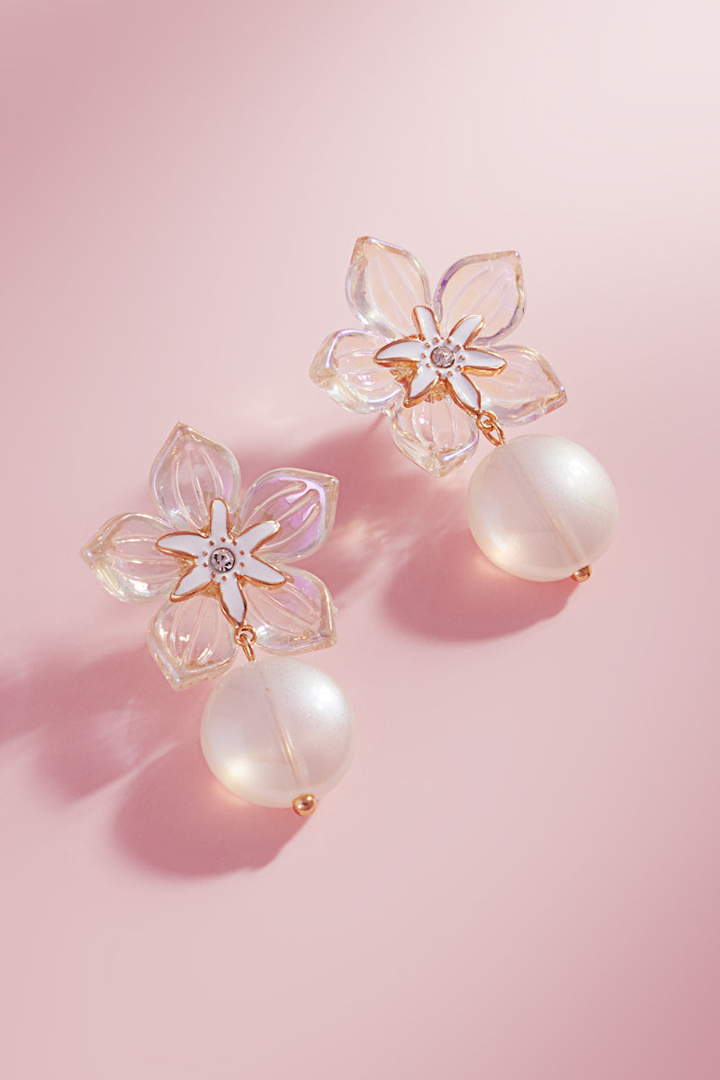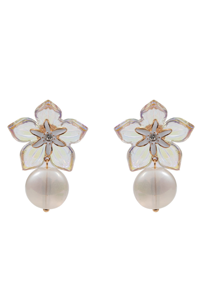 Flower Iridescent Acrylic W Pearl Post Eearrings