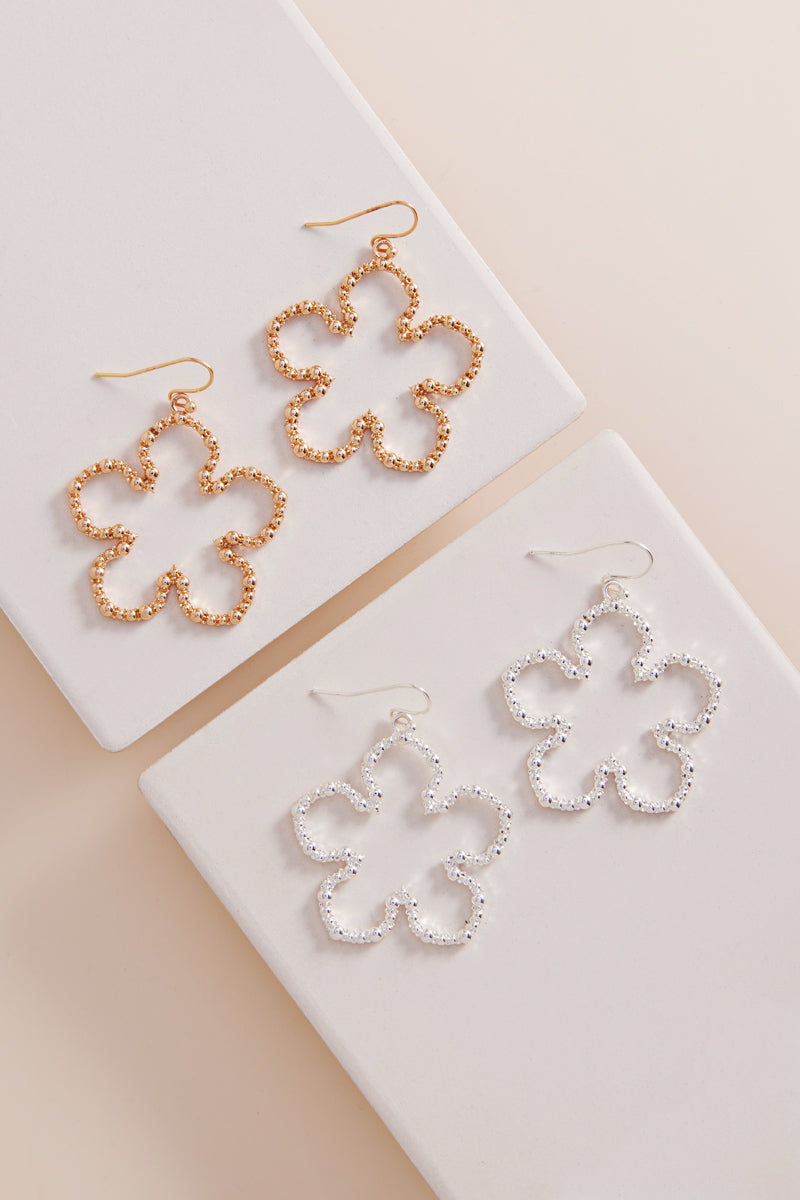 Expertly crafted with 1.5 inch flower metal hooks, these earrings combine elegant design with durability. Enhance your style with a touch of floral sophistication.