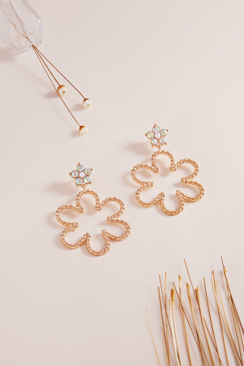 These 2.25 inch flower shaped metal post earrings add a touch of elegance to any outfit. Their unique design and quality material make them the perfect accessory for a stylish and sophisticated look