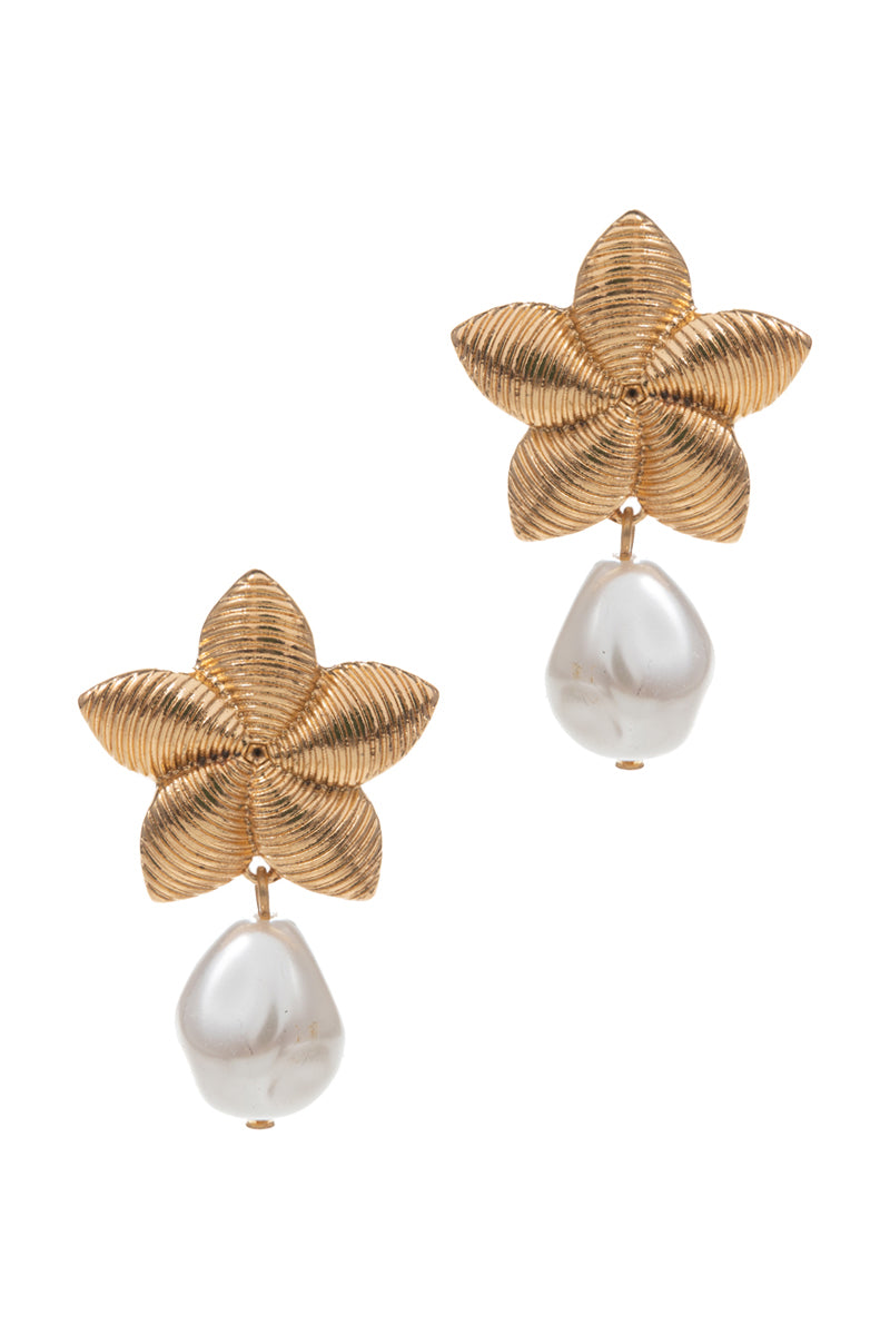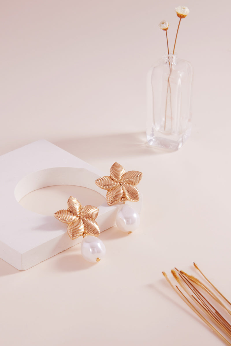 Flower Shaped Pearl Post Earrings