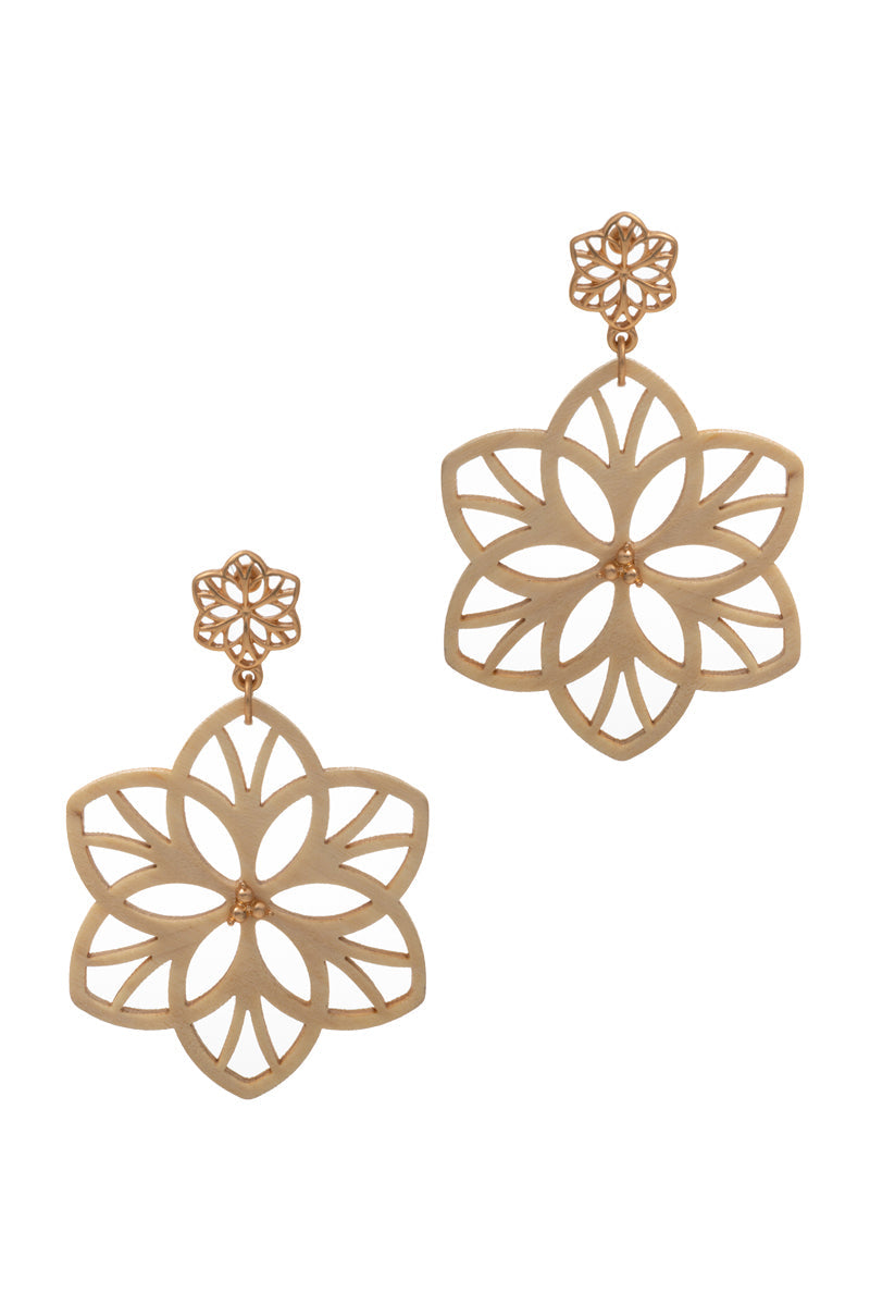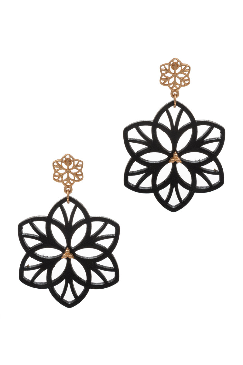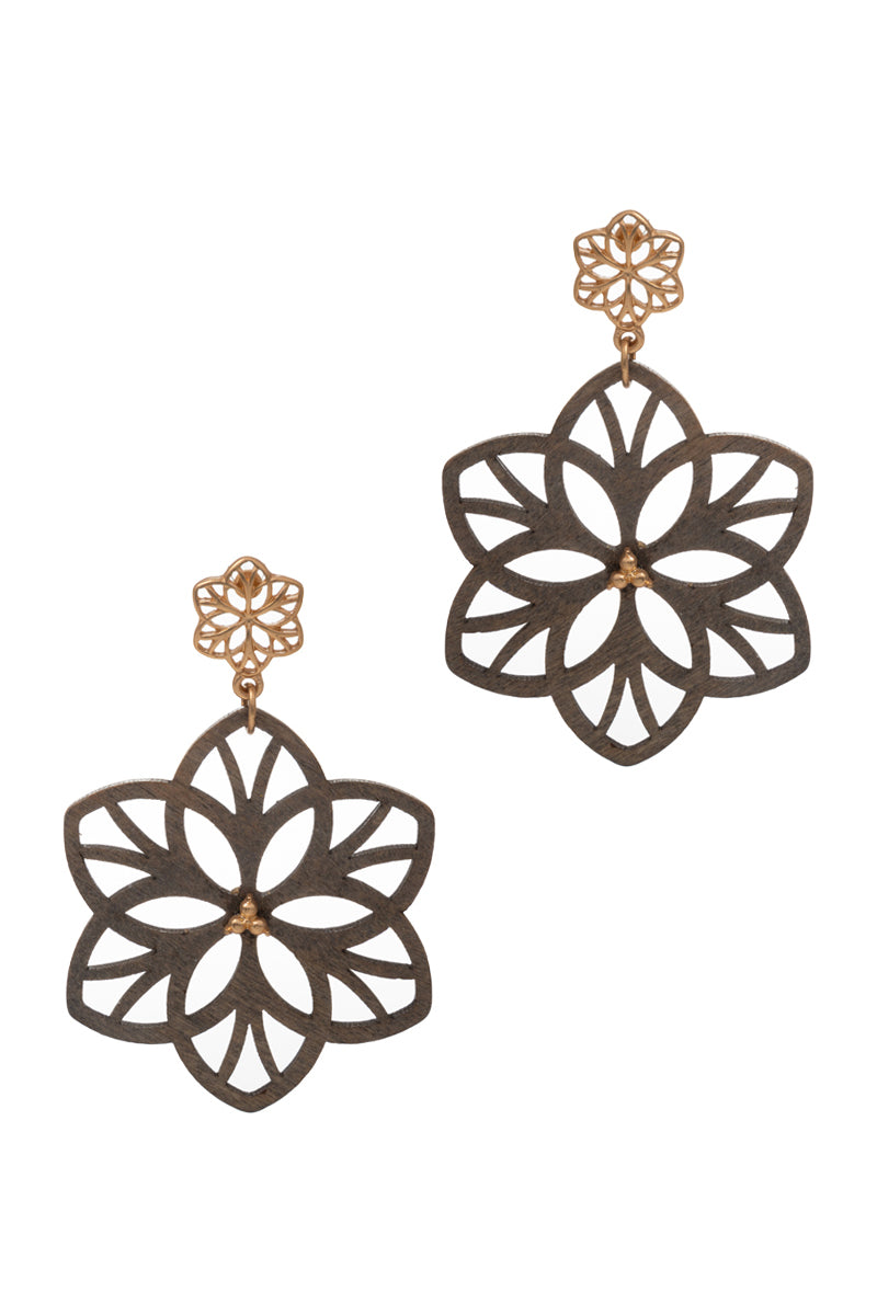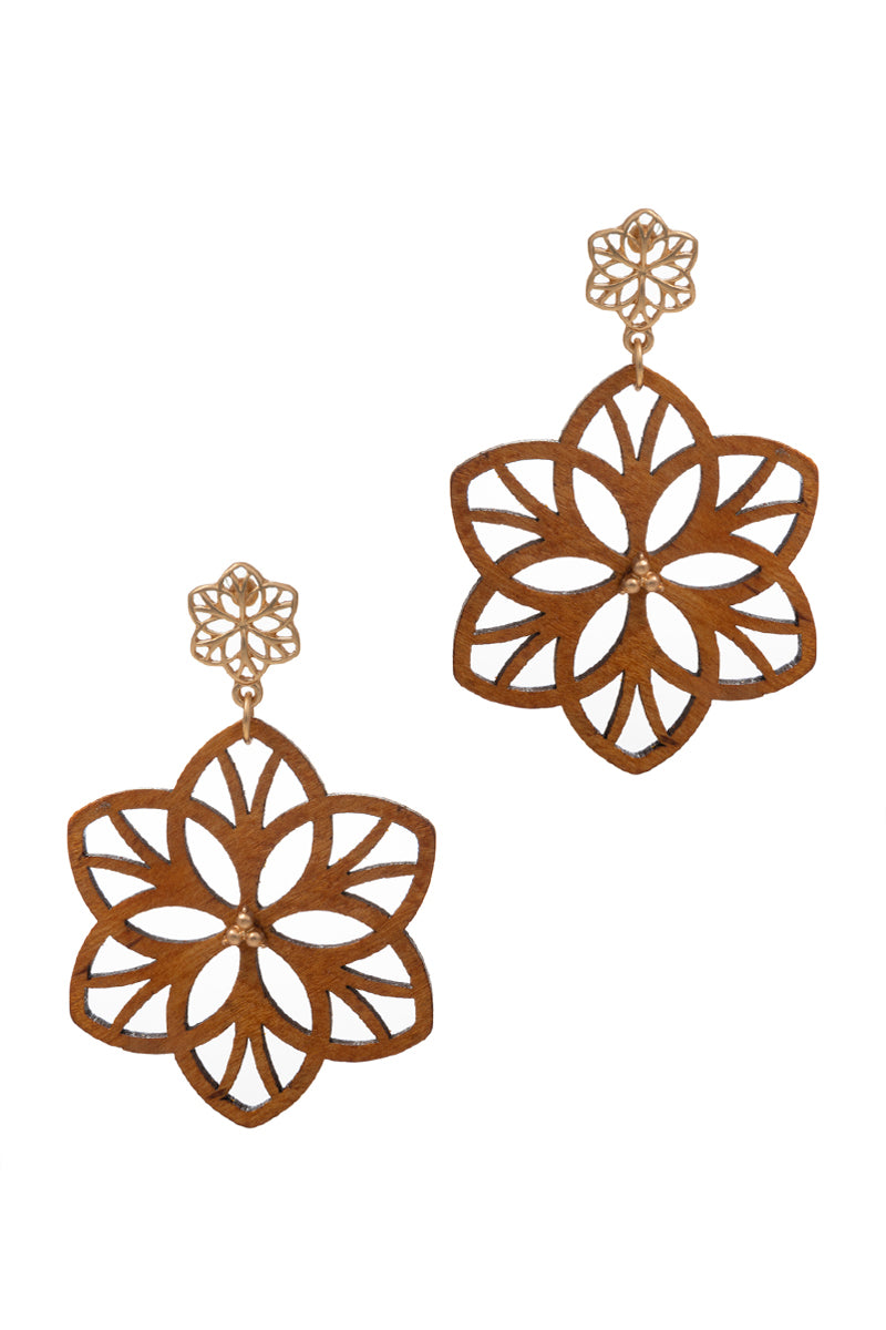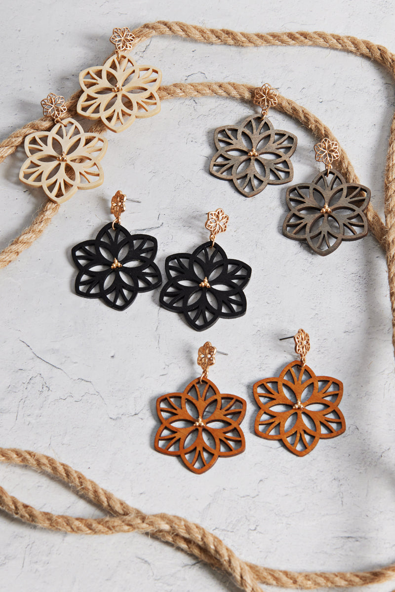 Enhance your look with these exquisite 2.5 inch flower shaped wood post earrings. Made from high-quality materials, these earrings add a touch of nature-inspired elegance to any outfit.