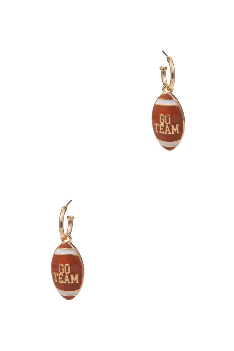 Add a touch of sporty elegance with these 1.5 inch football enamel hoop earrings. Made with high quality materials, they are lightweight and comfortable to wear.