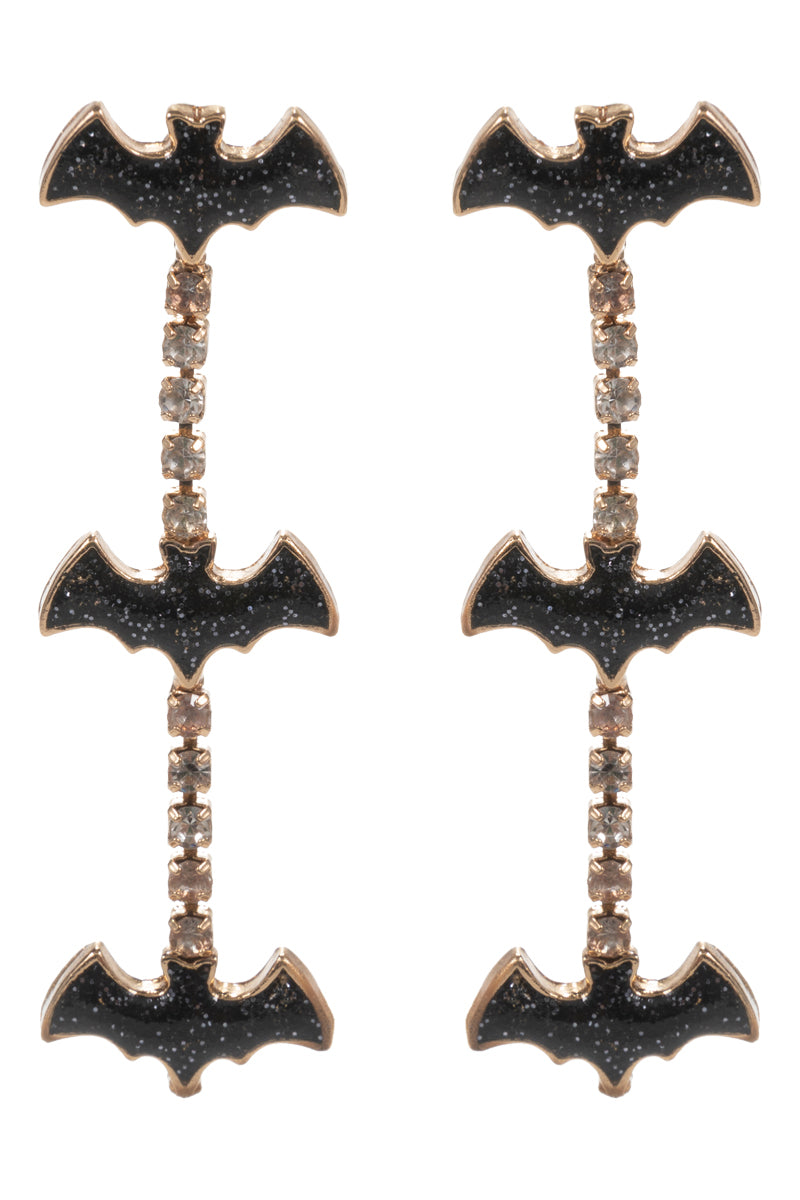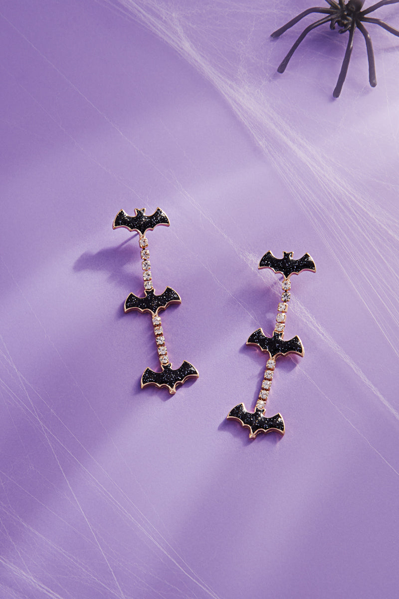 Halloween Bat Enamel With Rhinestone Post Earrings