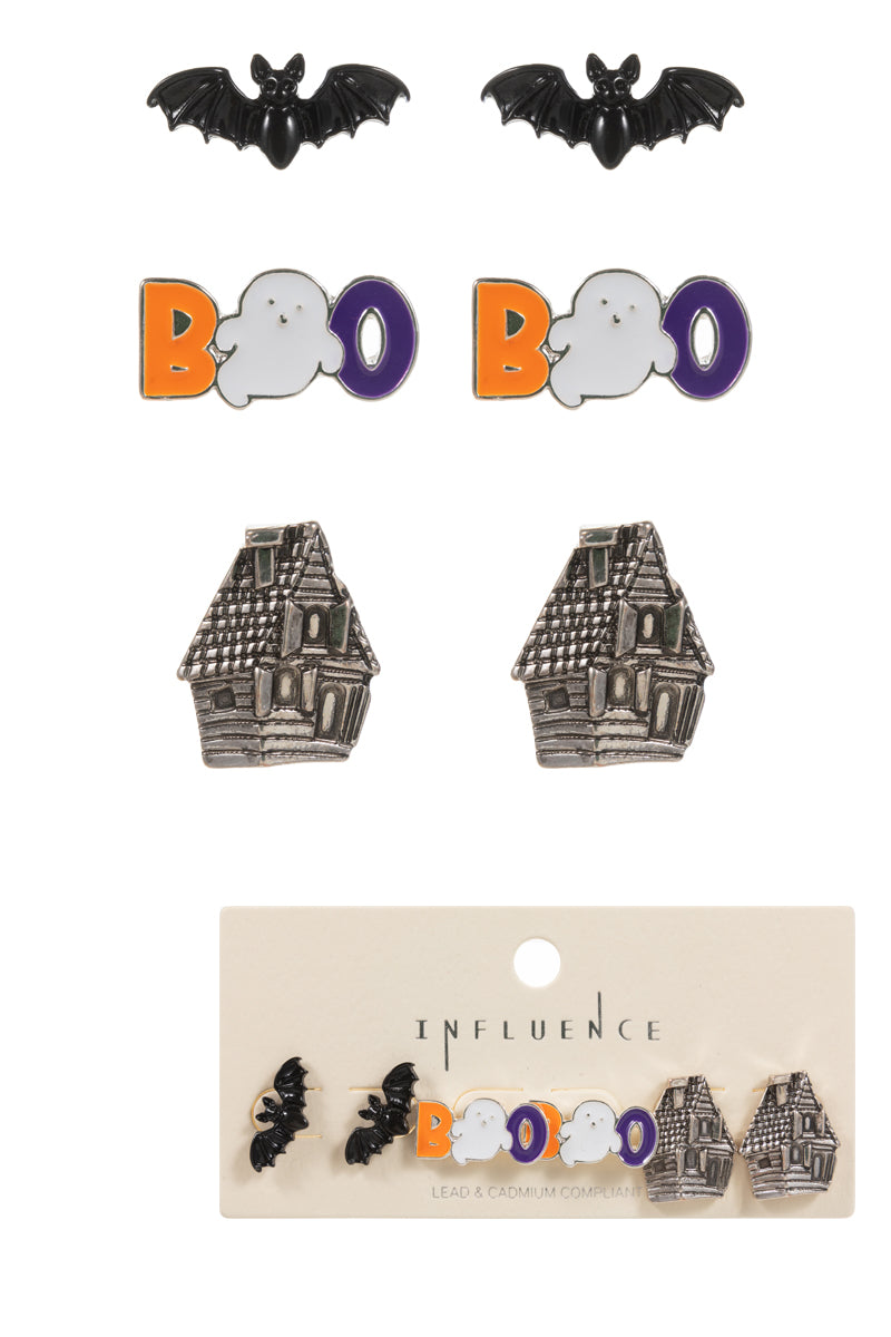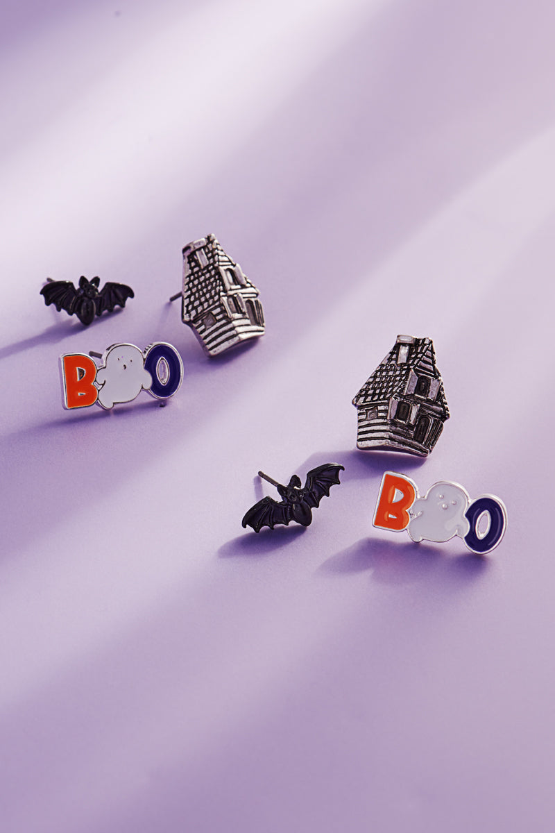 Halloween Bat Ghost House 3 Set Post Earrings