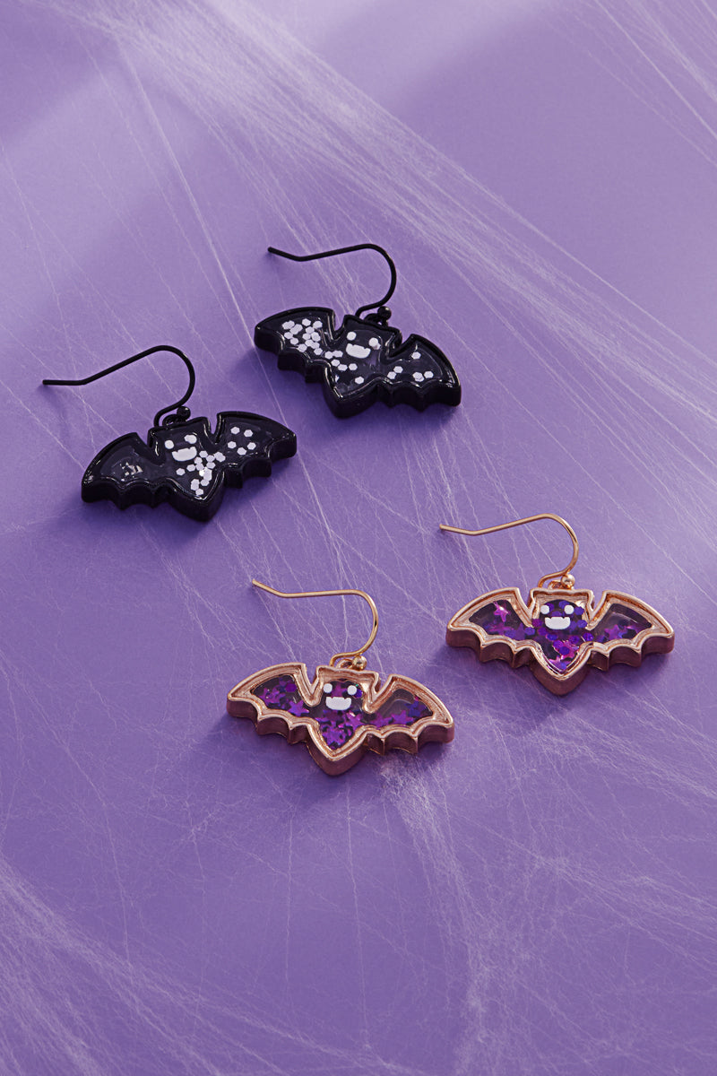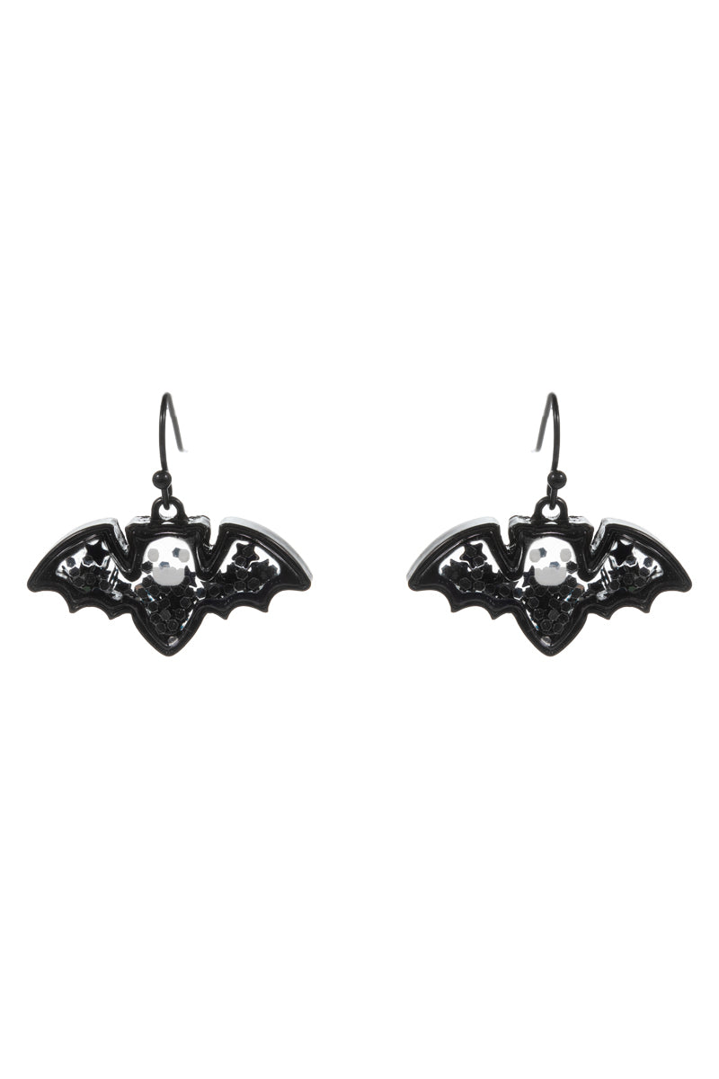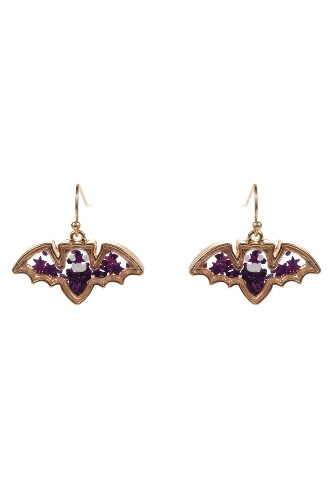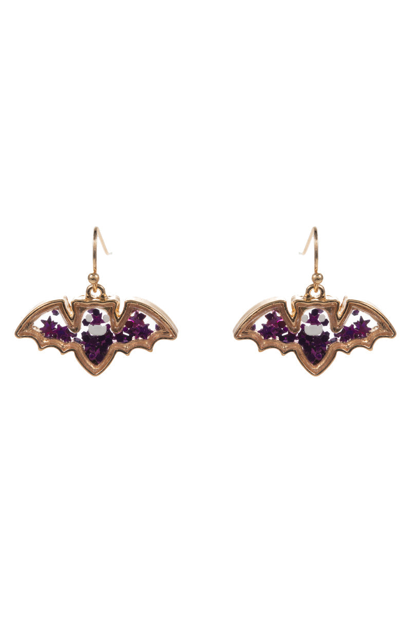 Halloween Bat Glitter Shaker Brass Hook Earrings