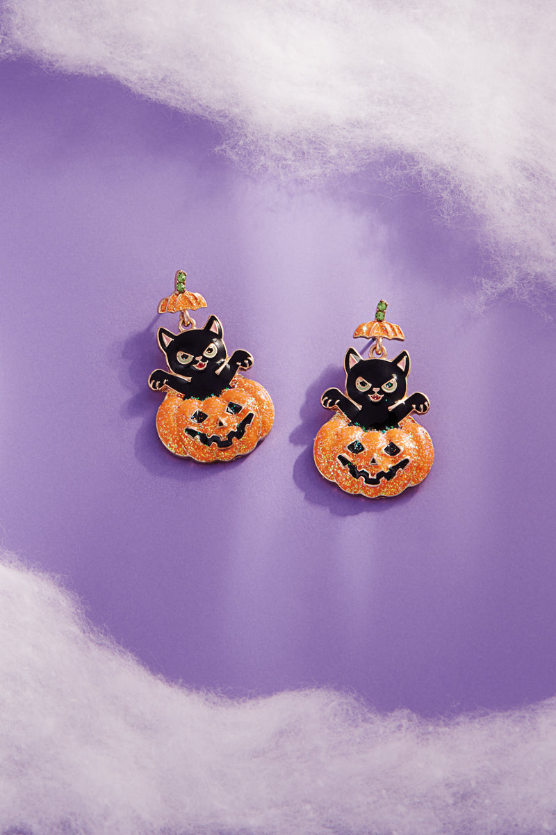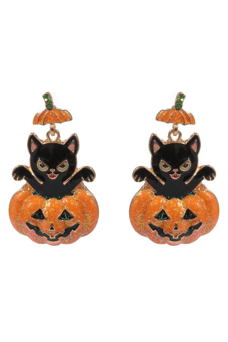 Halloween Black Cat Pumpkin Enamel Post Earrings