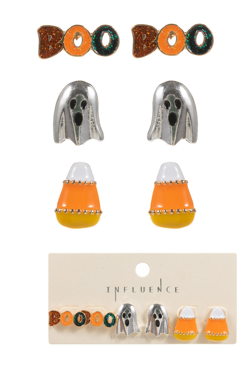 Halloween Boo Ghost Candy Corn 3 Set Post Earrings