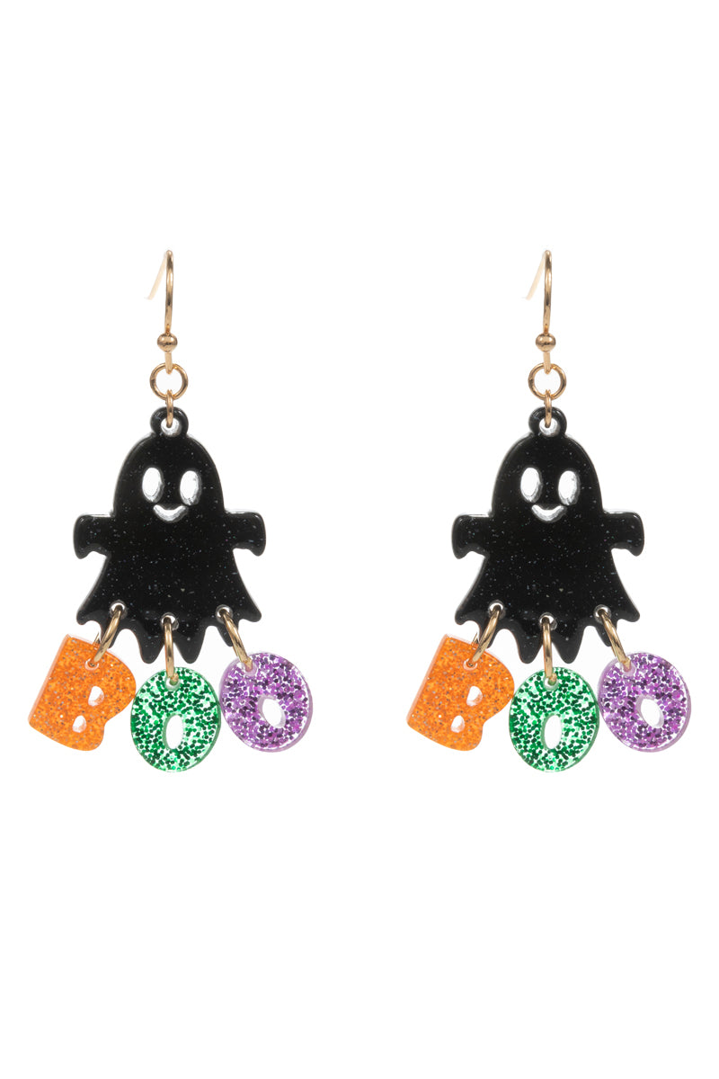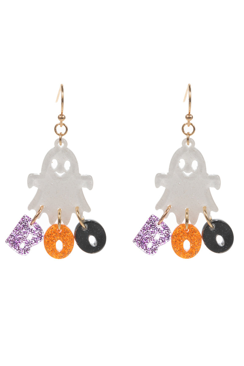 Halloween Boo Letter Ghost Post Pin Hoop Earrings