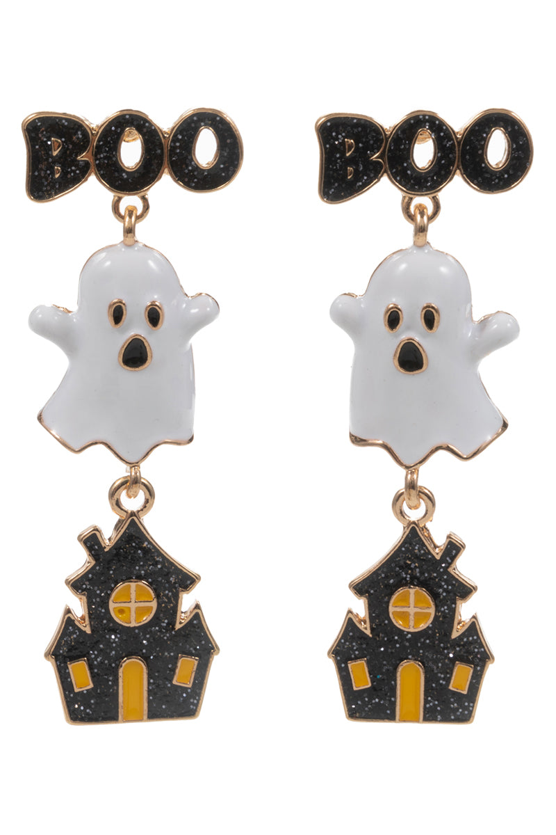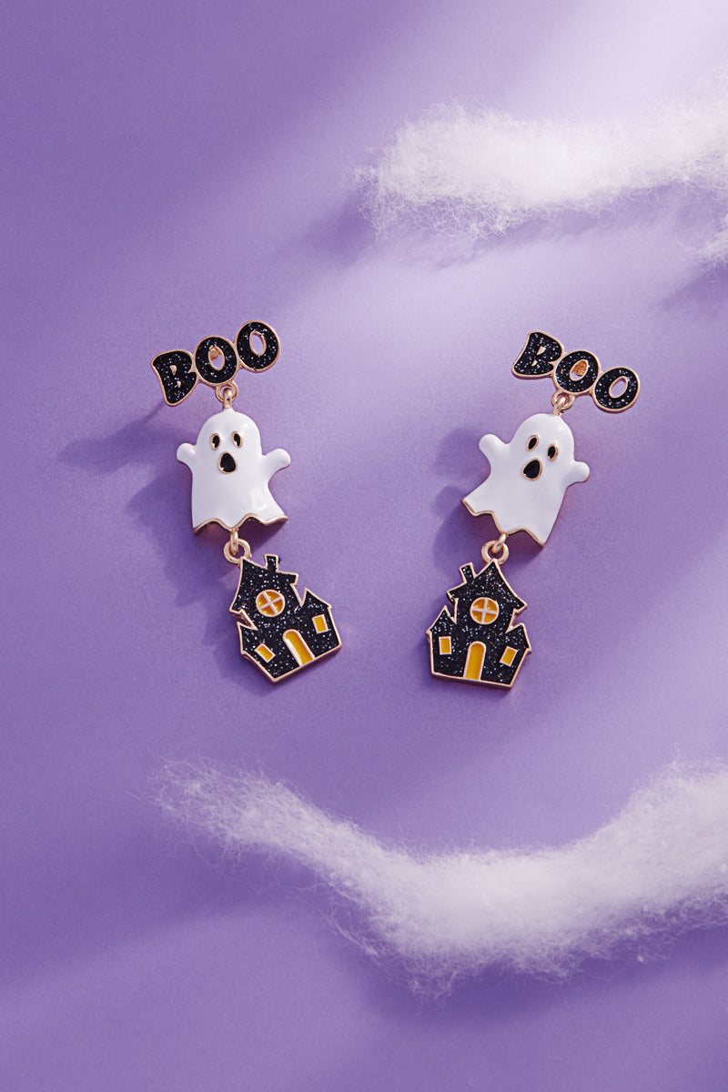 Halloween Boo Shaped 3 Drop Enamel Post Earrings