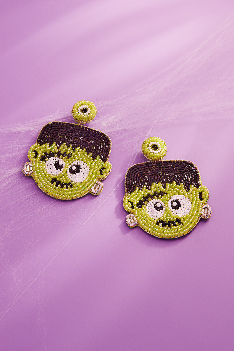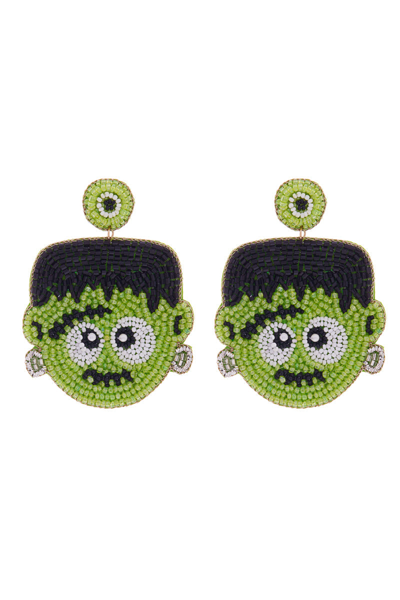 Crafted with precision and care, these 2.8 inch post earrings feature a unique Frankenstein shape, handcrafted with Indian beads. Add a touch of spookiness and cultural charm to your style with these one-of-a-kind earrings. The perfect accessory for any occasion.