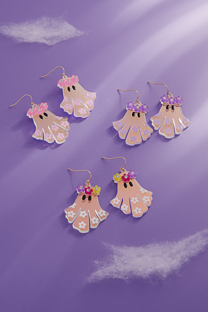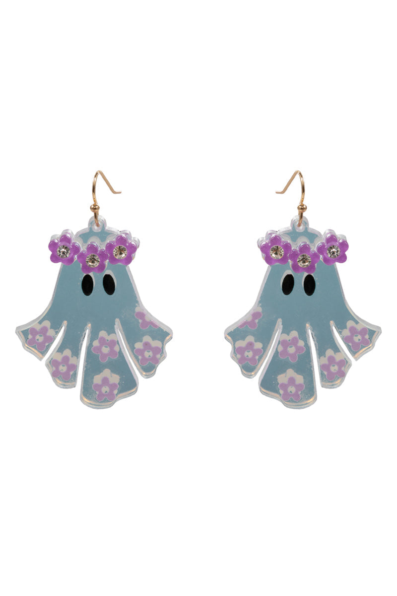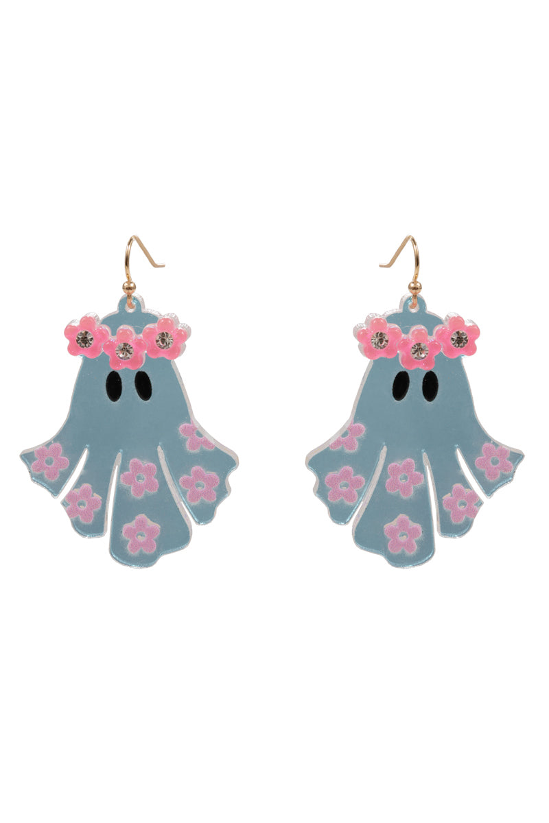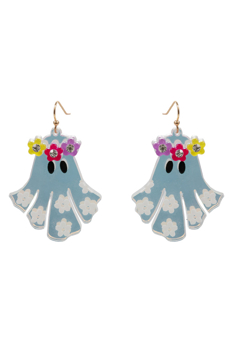 Halloween Ghost Acetate Flower Brass Hook Earrings