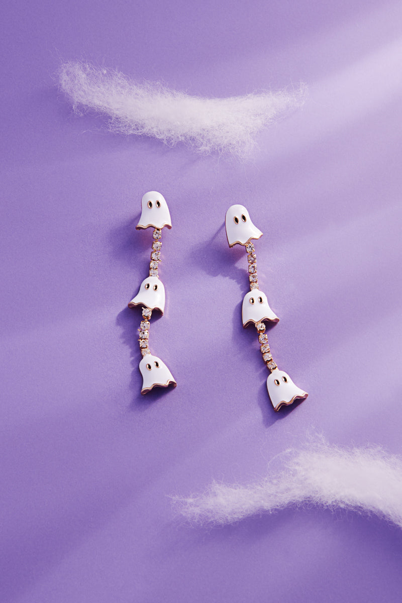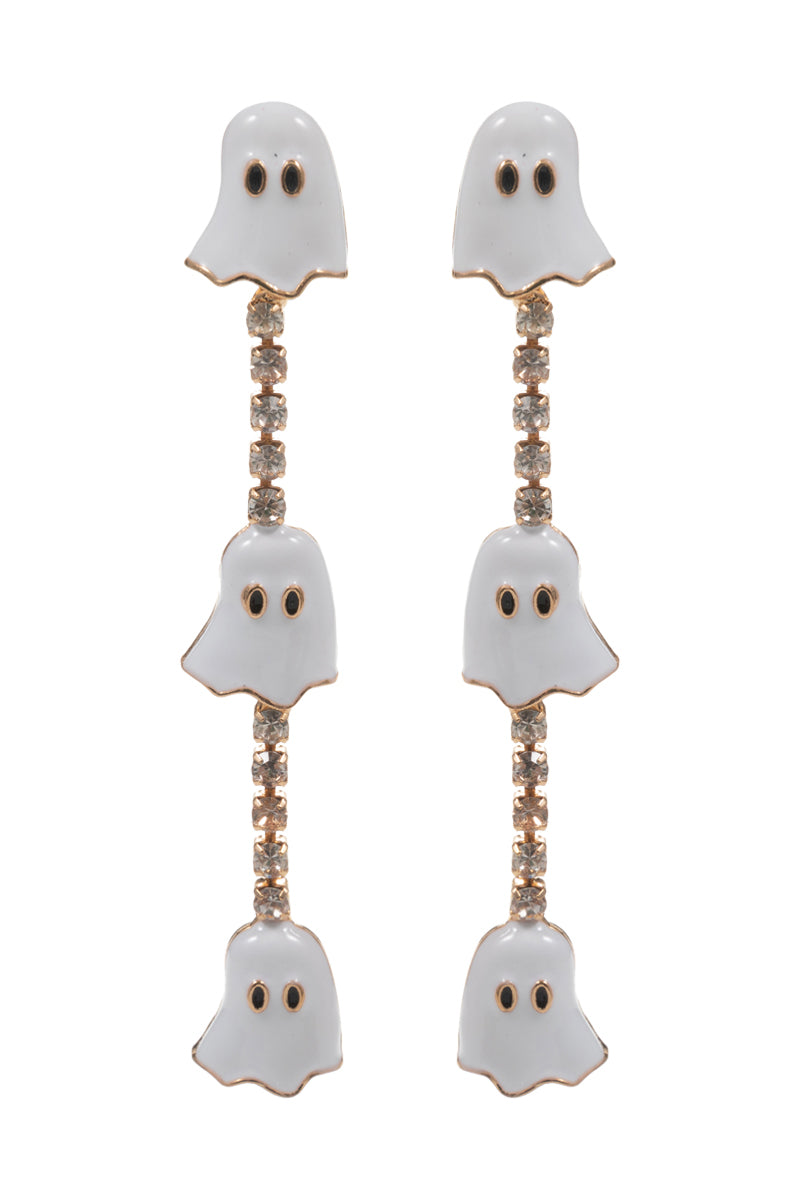 Halloween Ghost Enamel W Rhinestone Post Earrings