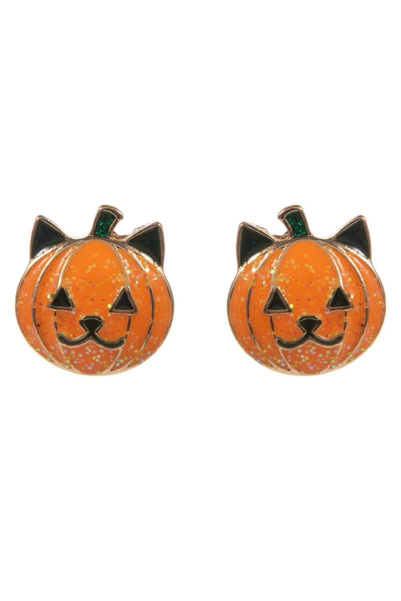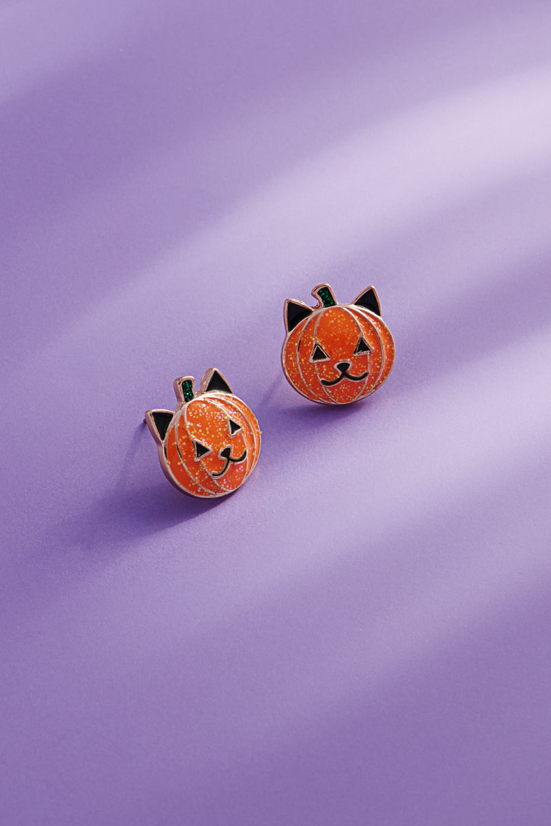 Halloween Pumpkin Cat Shaped Enamel Post Earrings