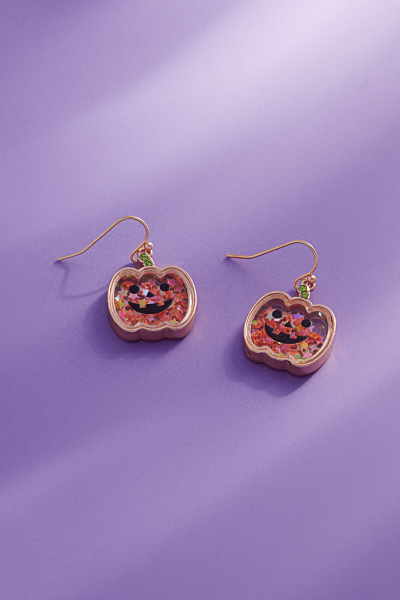 Halloween Pumpkin Glit Shaker Brass Hook Earrings