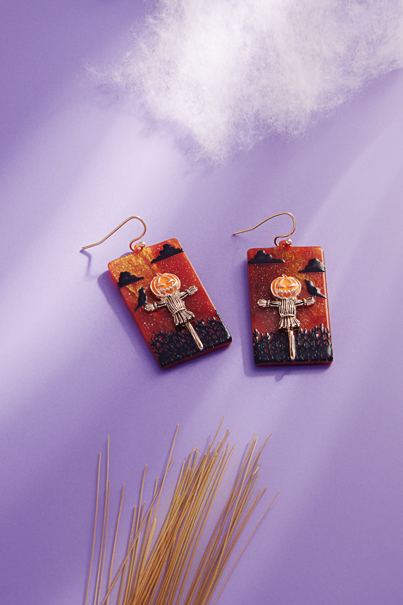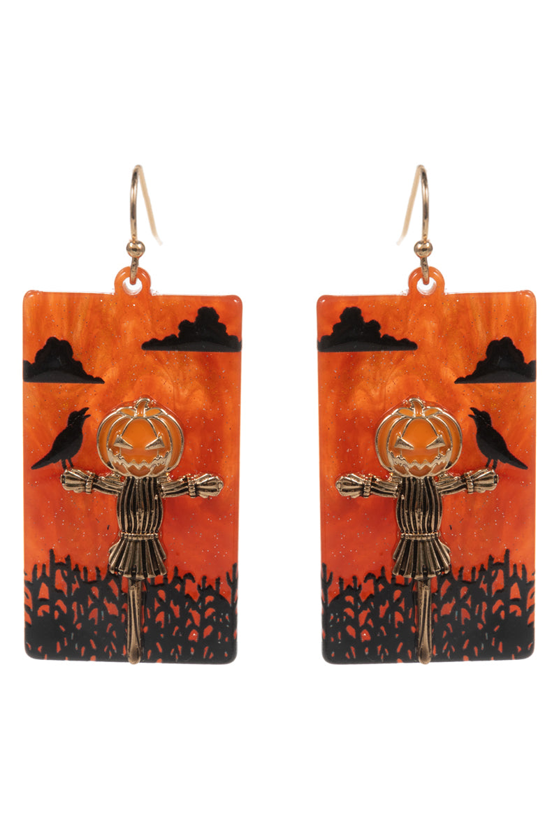 Halloween Pumpkin Scarecrow Acetate Hook Earrings