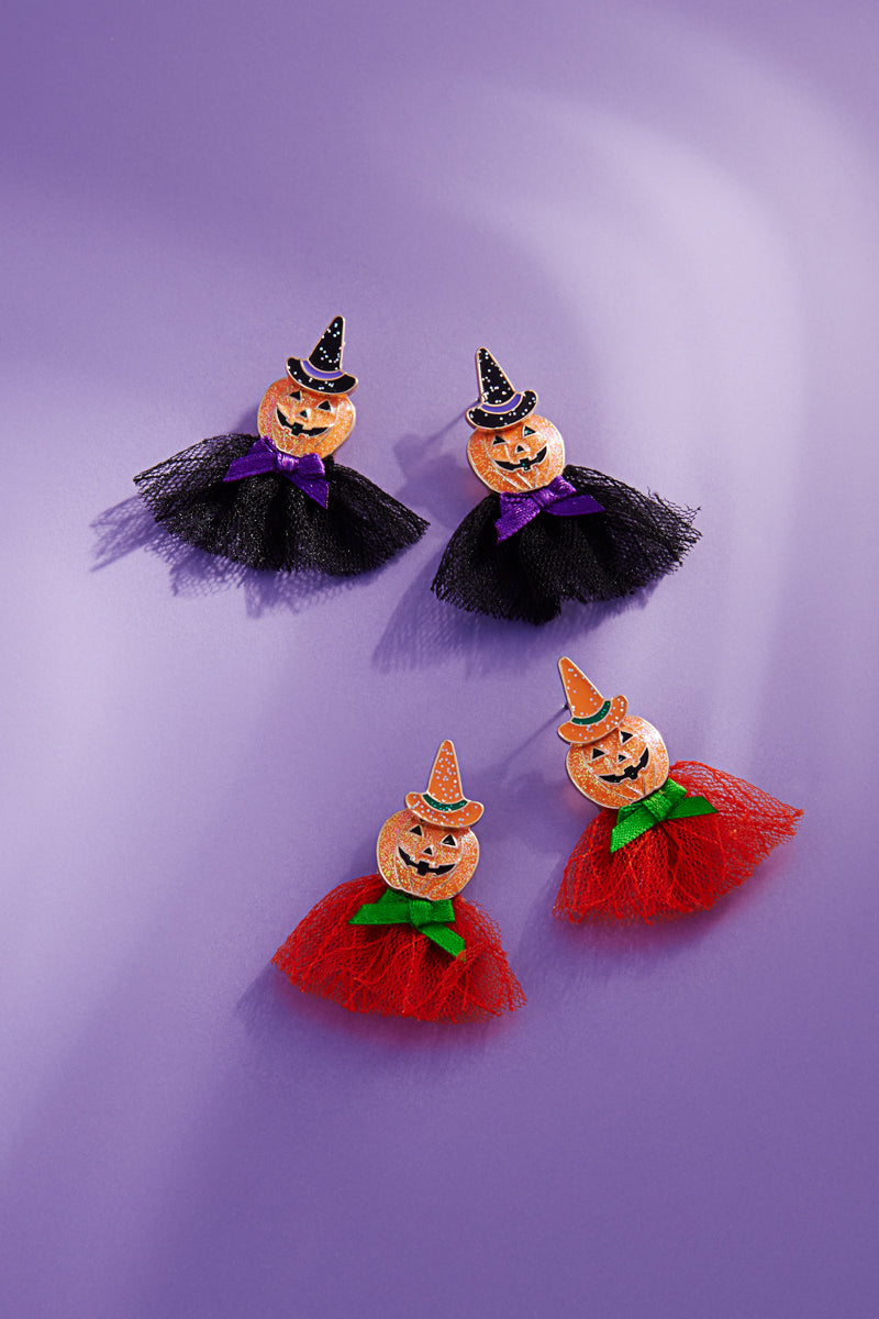 Expertly crafted for Halloween season, these 2 inch Pumpkin Witch Shaped Enamel and Lace Cape earrings feature hypoallergenic titanium posts for sensitive ears. The perfect addition to any festive outfit, experience maximum comfort and style without compromising on quality.