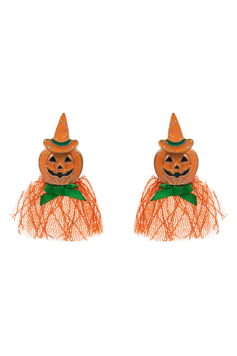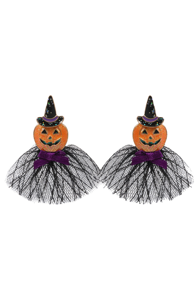 Halloween Pumpkin Witch W Lace Cape Post Earrings