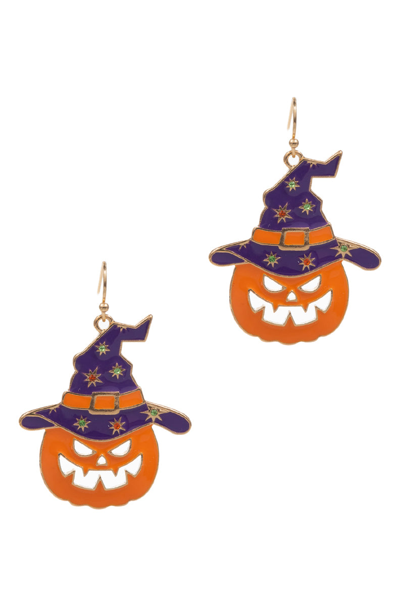 Halloween Pumpkin With Witch Hat Hook Earrings