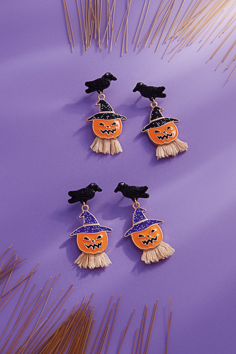 Halloween Scare Crow Enamel W Raffia Hook Earrings
