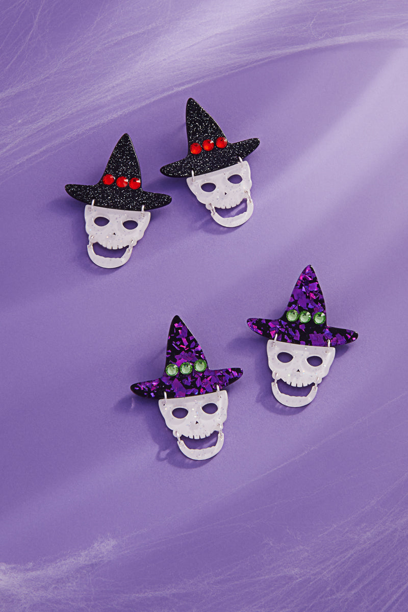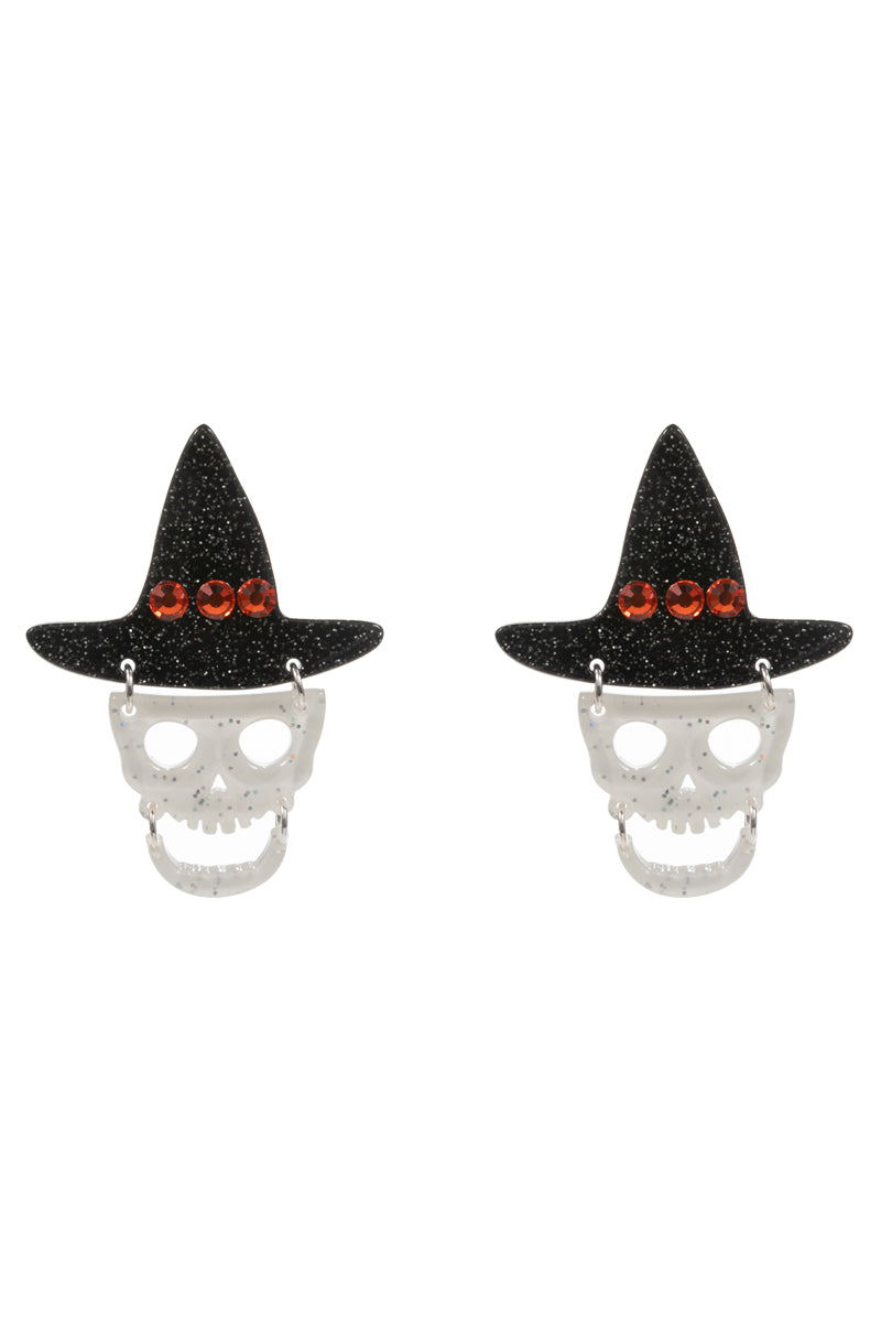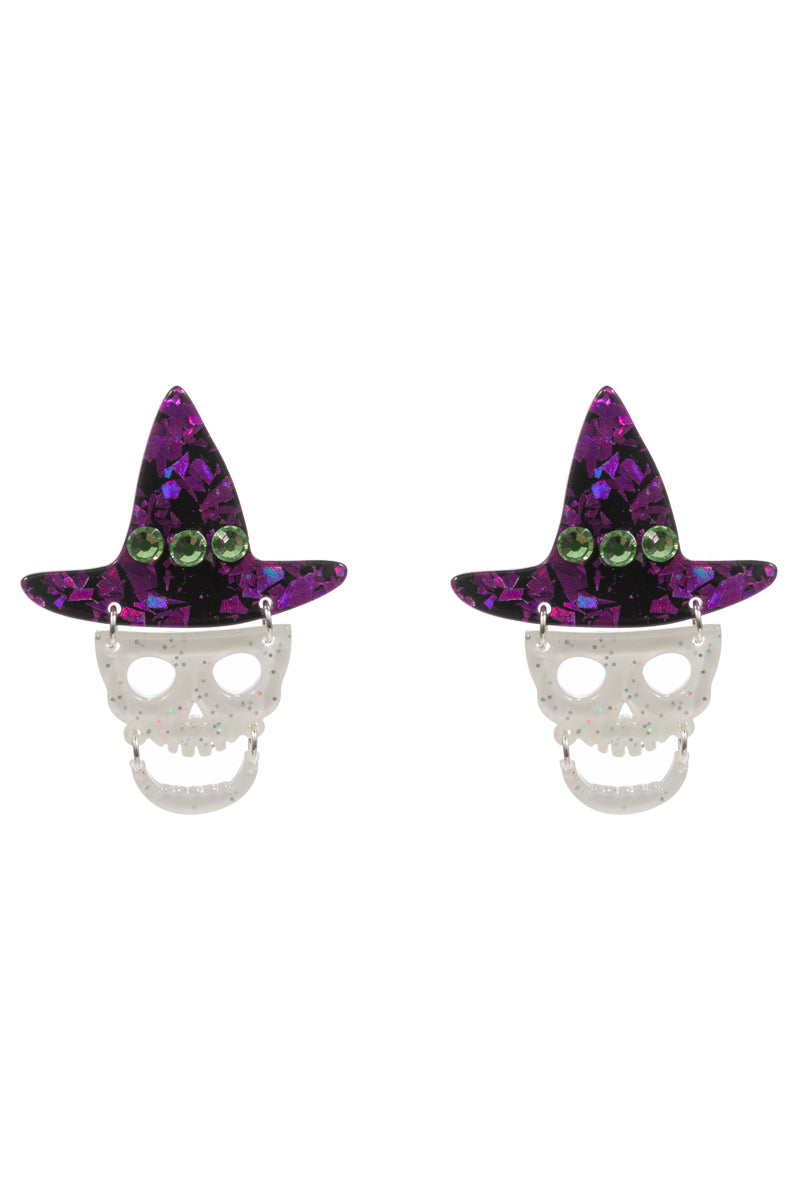 Halloween Skull Acetate Witch Hat Post Earrings