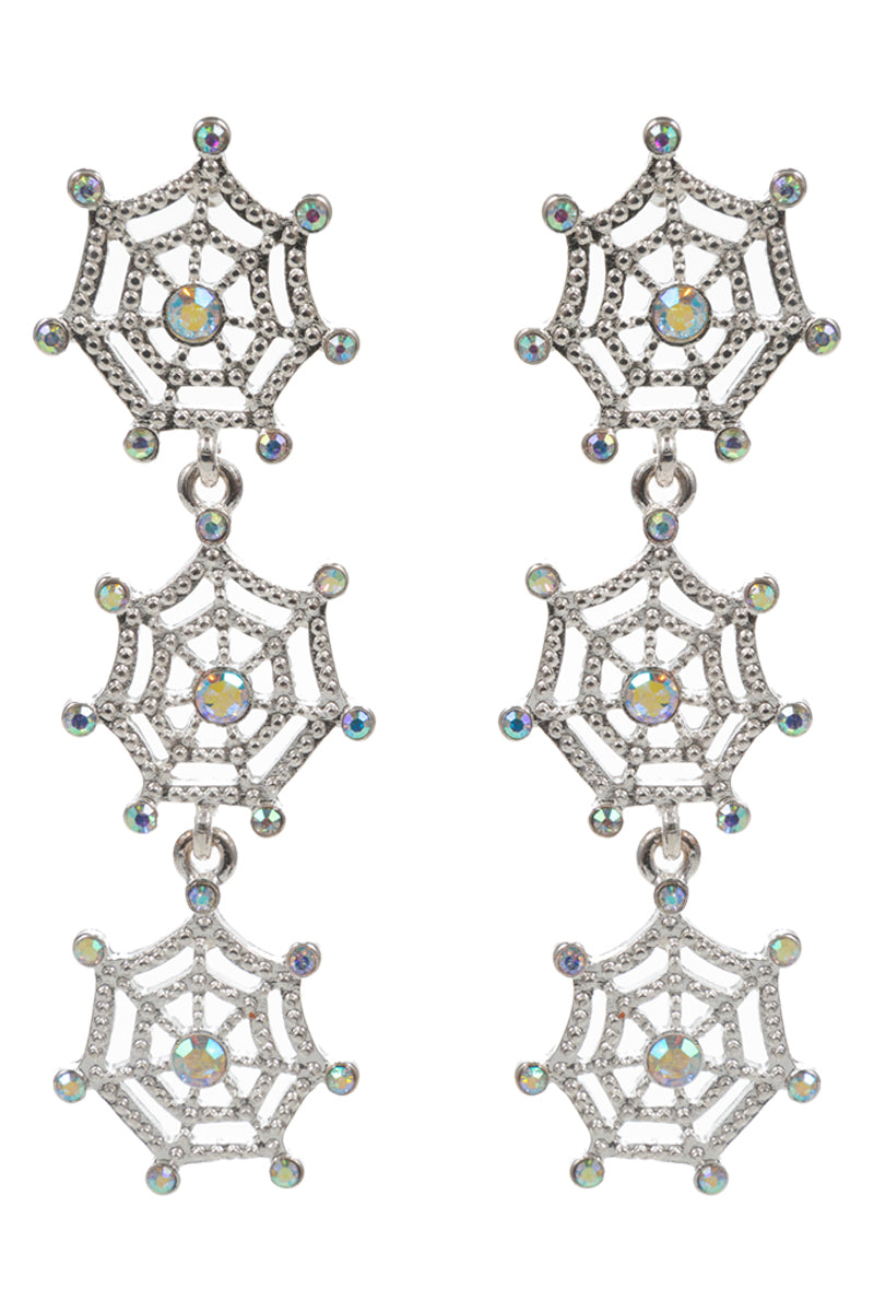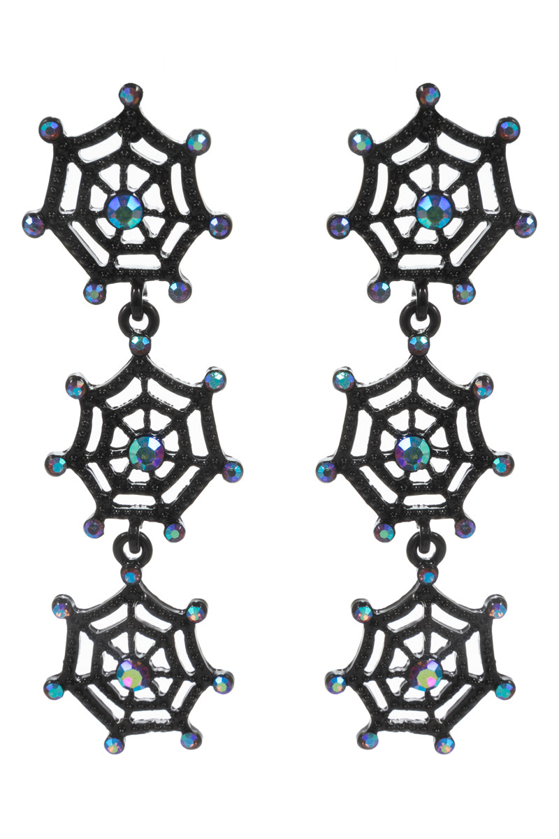 Halloween Spider Web Metal Ab Stones Post Earrings