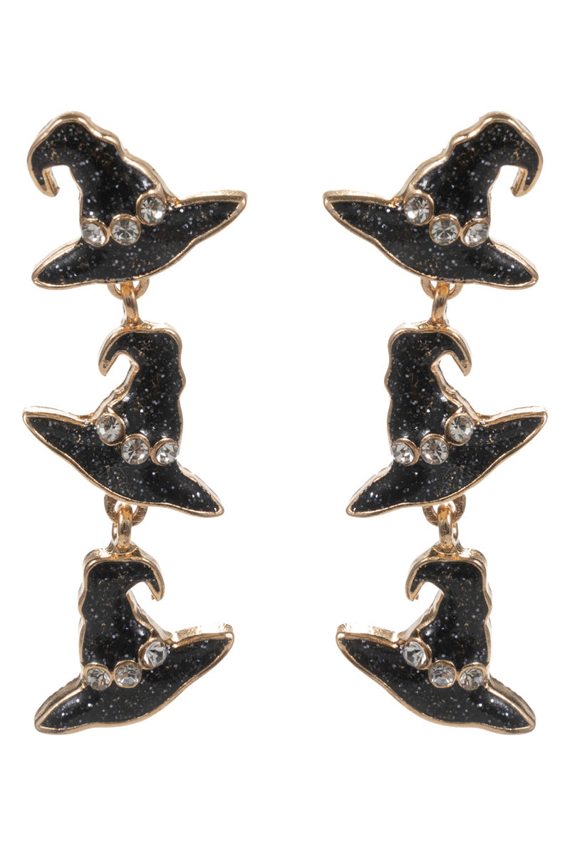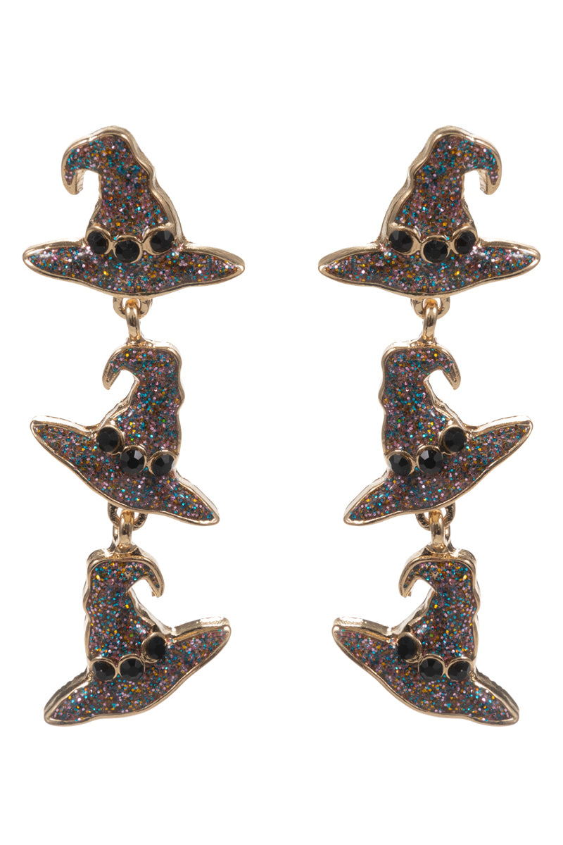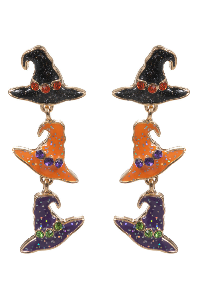 Halloween Witch Hat 3 Drop Enamel Post Earrings