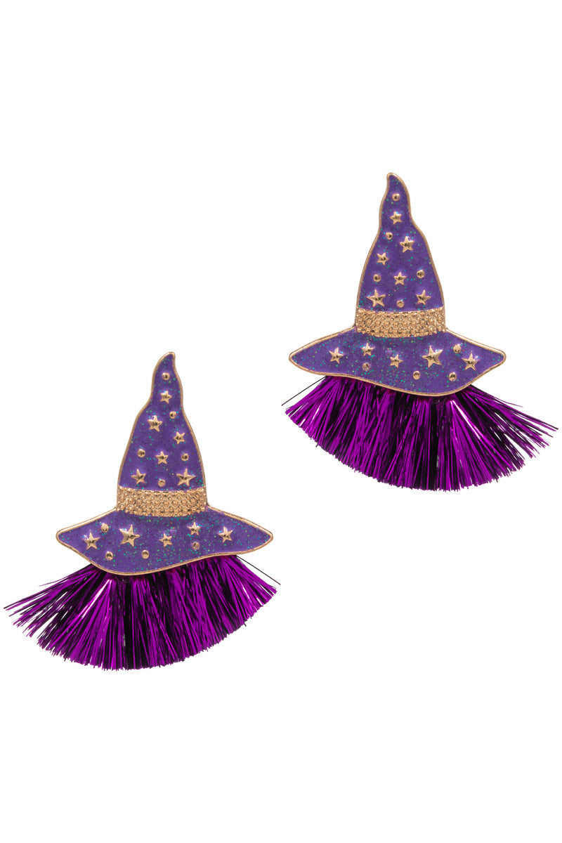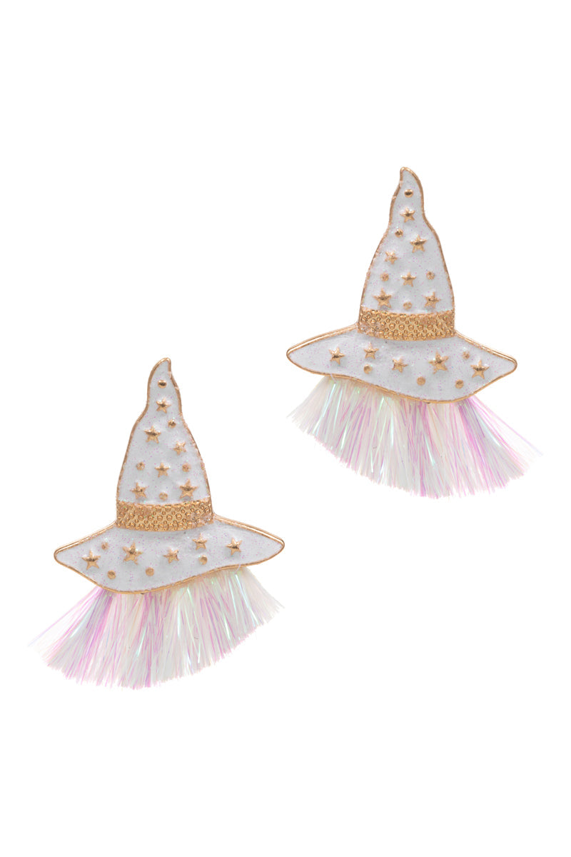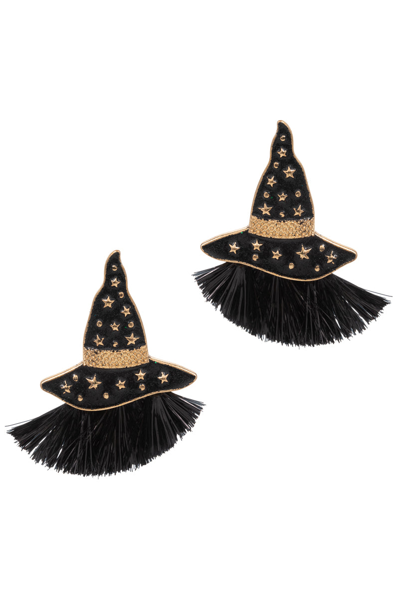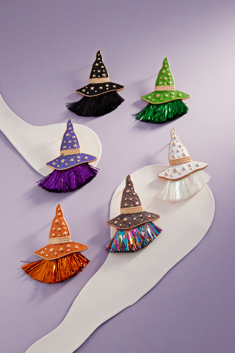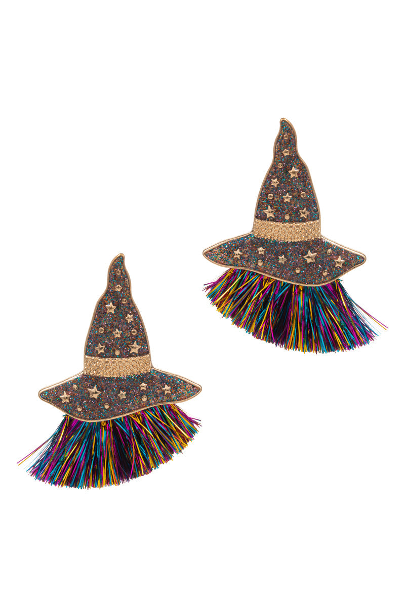 Halloween With Hat W Glitter Tassel Post Earrings