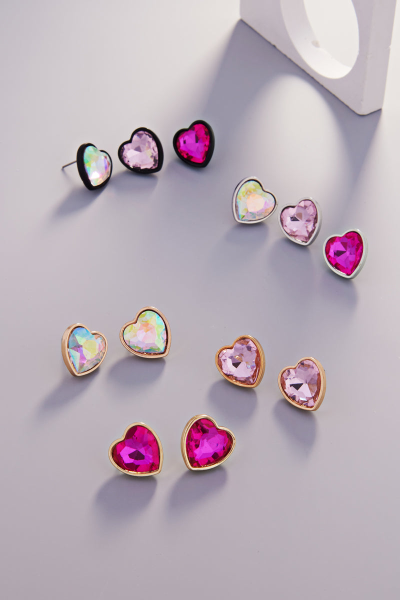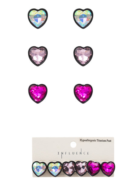 Heart 3 Set Ab Coated Rhine Stone Post Earrings