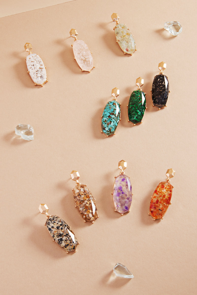 Hexagon Shaped Crackled Resin Stone Post Earrings