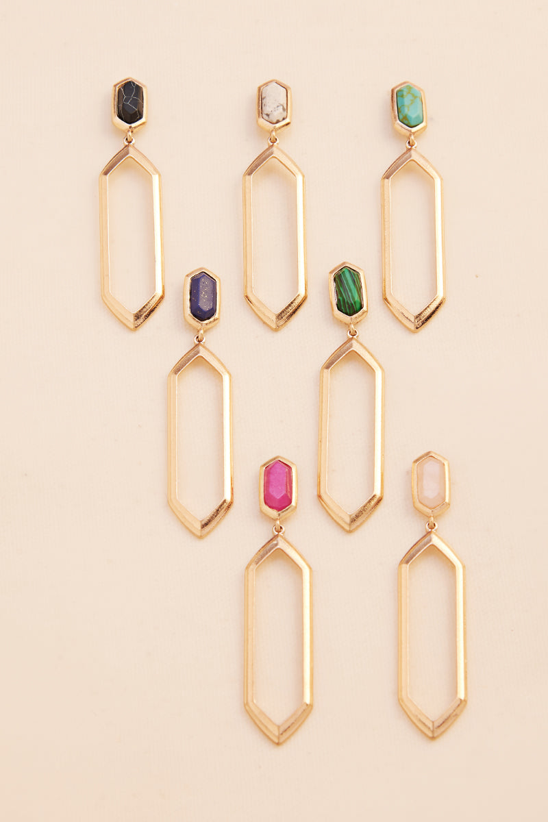 Hexagon Stone Post Earrings