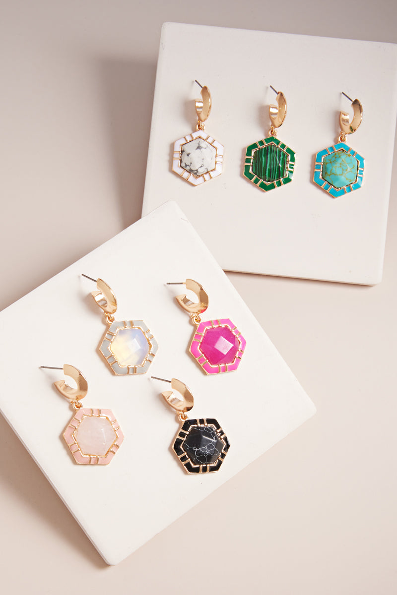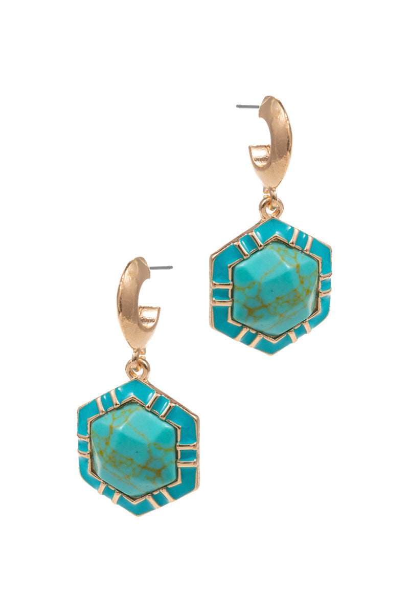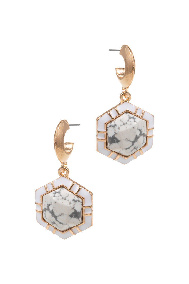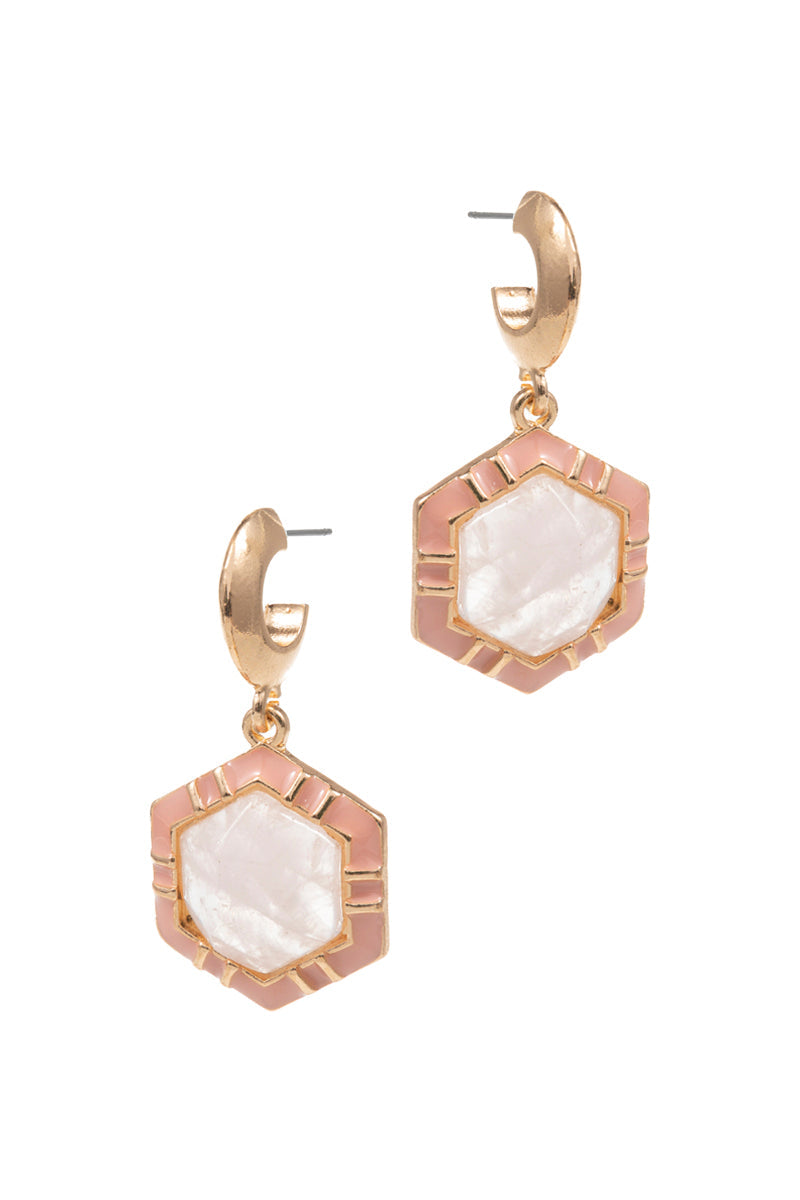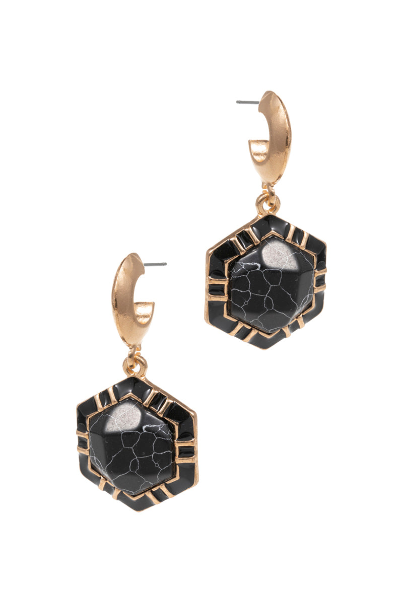 The unique hexagonal shape and enameled design make them a versatile accessory for both formal and casual occasions. Elevate your style with these stunning earrings.