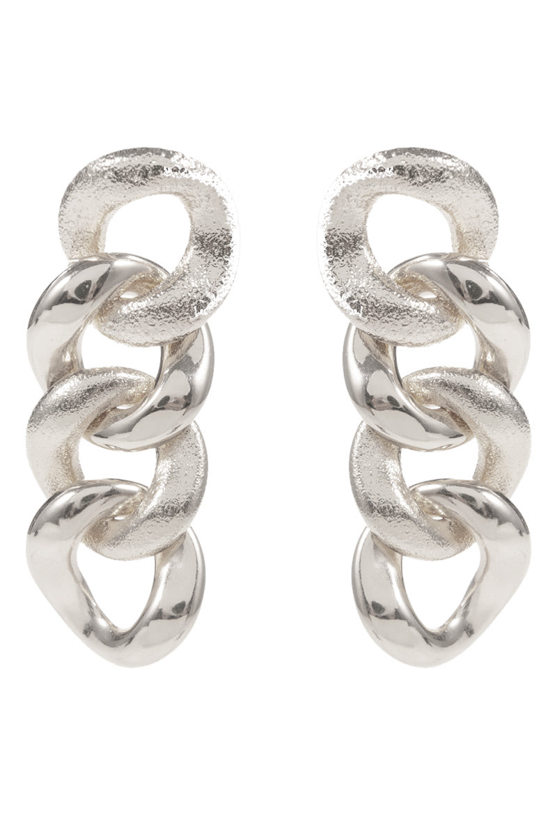 These 2.5 inch irregular shaped chuny metal linked post earrings are a unique and stylish addition to any jewelry collection. The chunky metal links create a bold and eye-catching look, perfect for making a statement. With their irregular shape, these earrings offer a one-of-a-kind touch to any outfit.