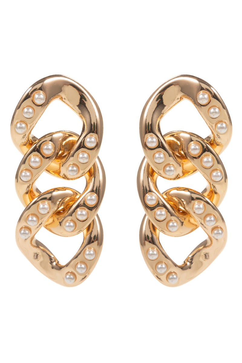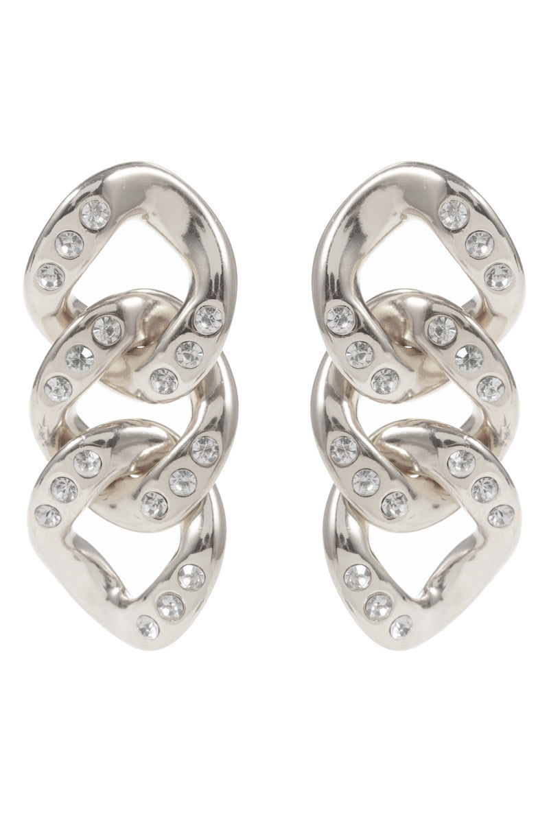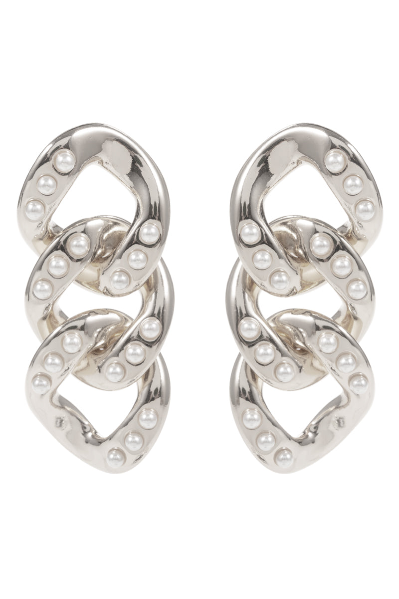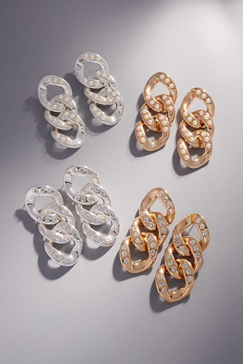 These 3.25 inch irregular shaped chunky metal linked post earrings are a stylish addition to any outfit. Made with high-quality materials, they offer a bold and unique look, perfect for making a statement. Upgrade your accessory game with these eye-catching earrings.