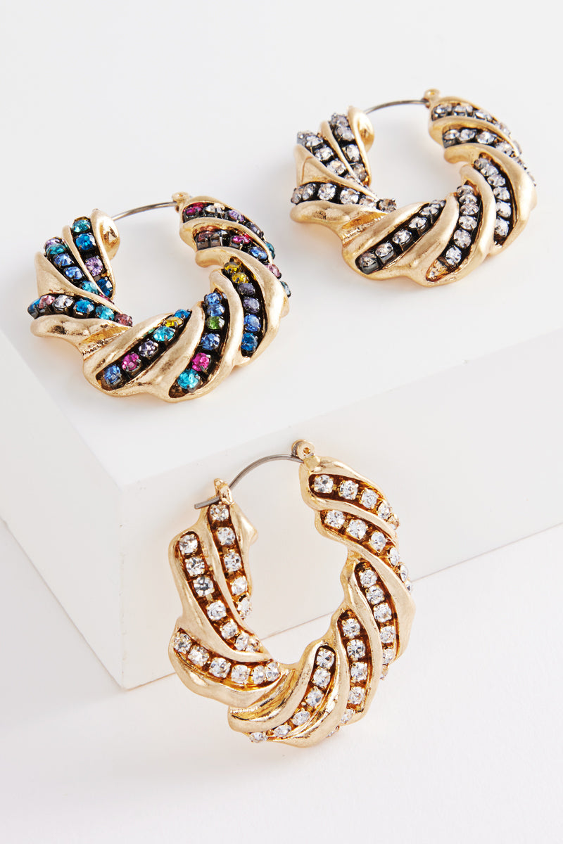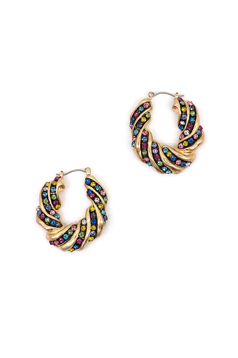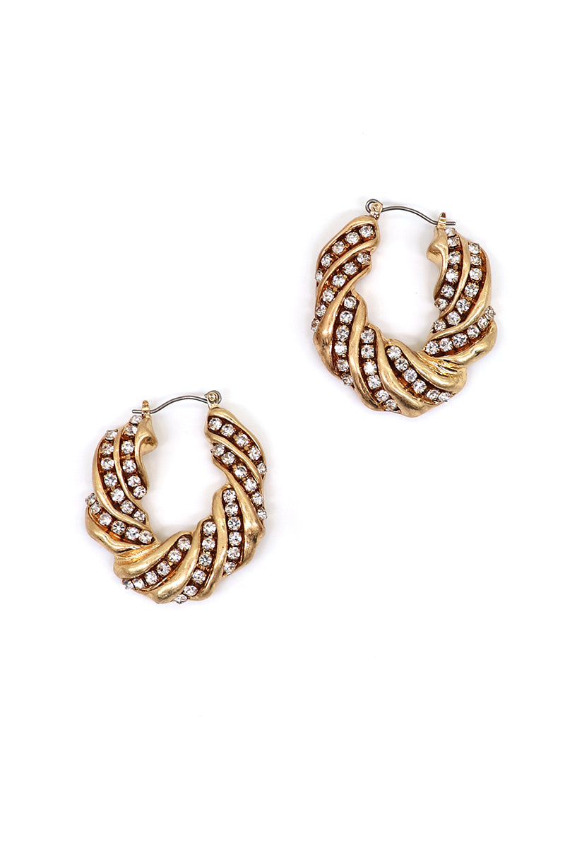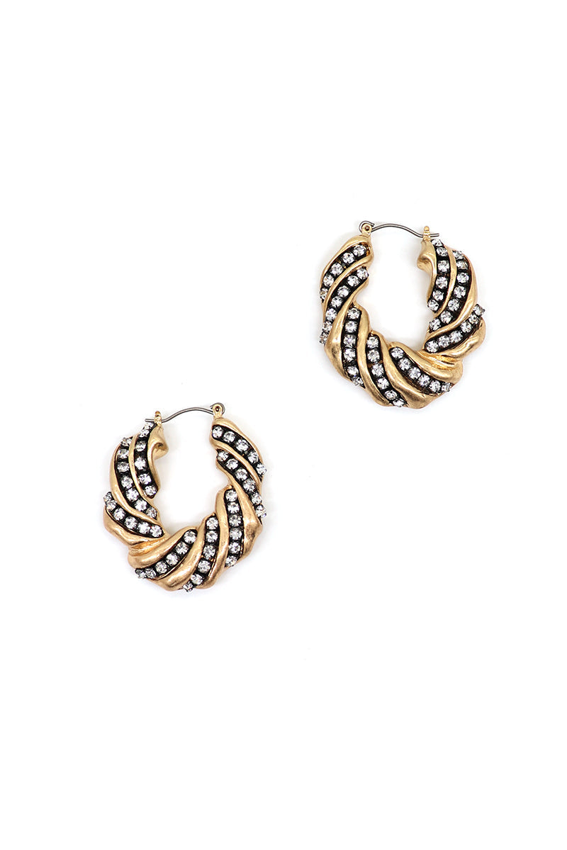 Irregular Hopper Rhinestone Titanium Hoop Earrings
