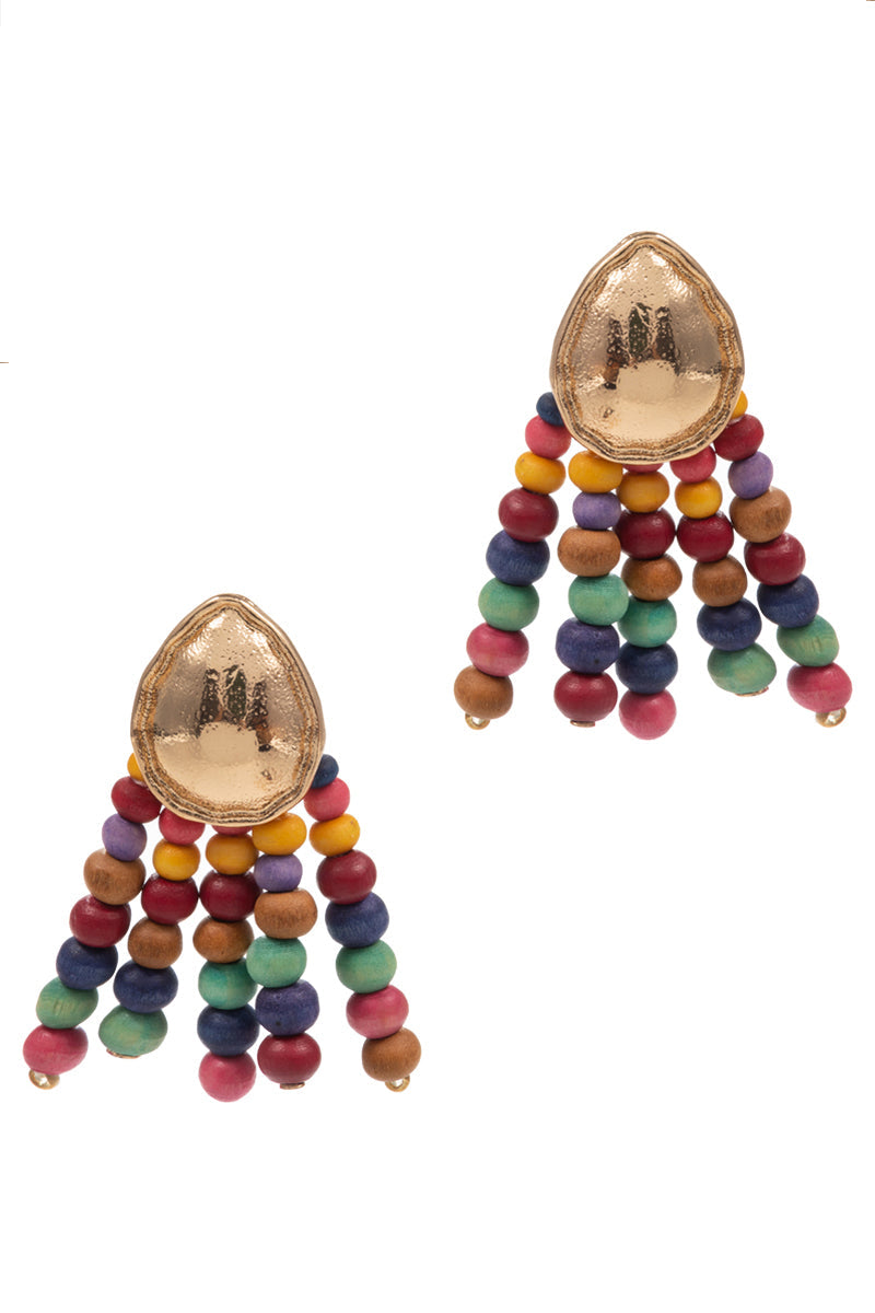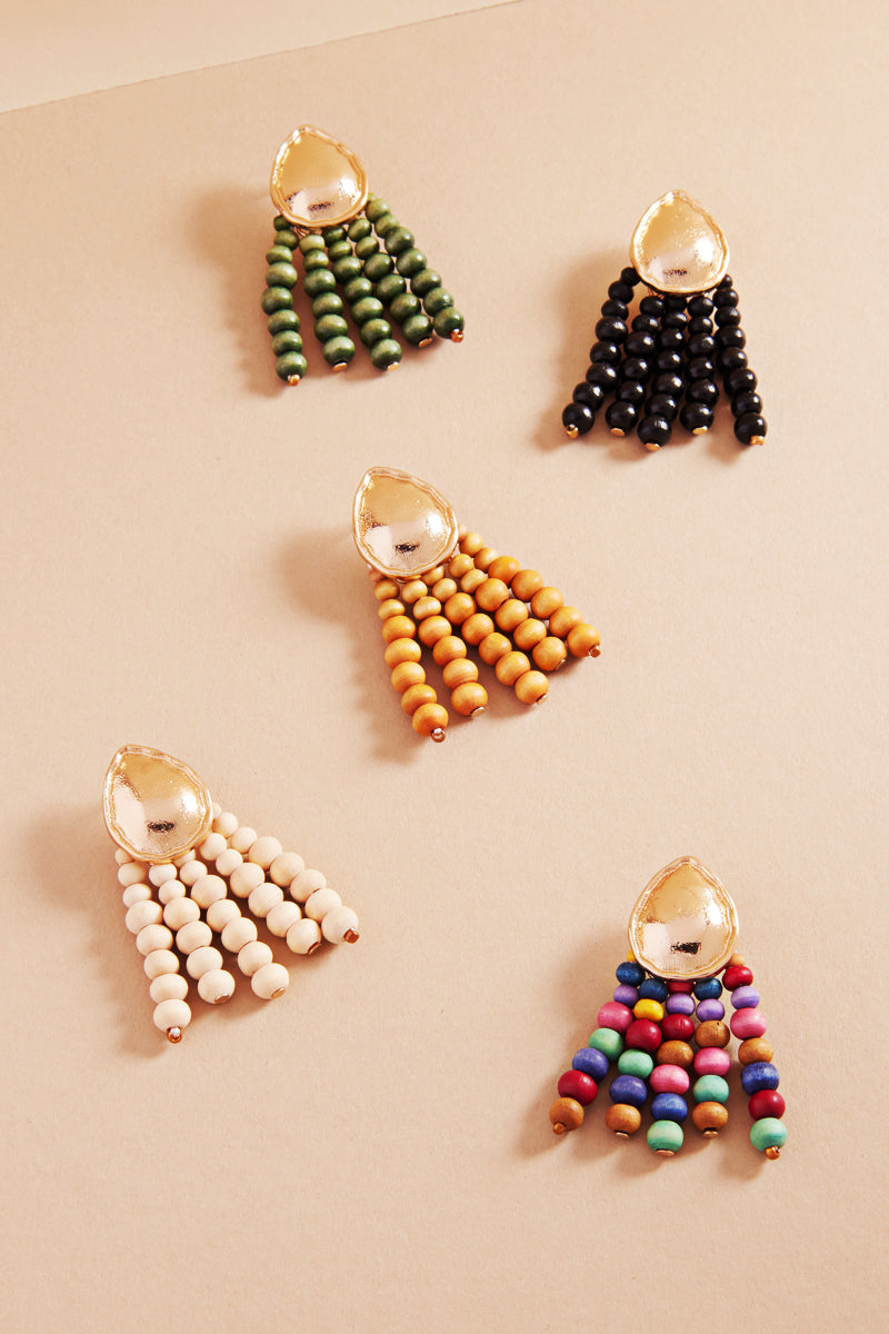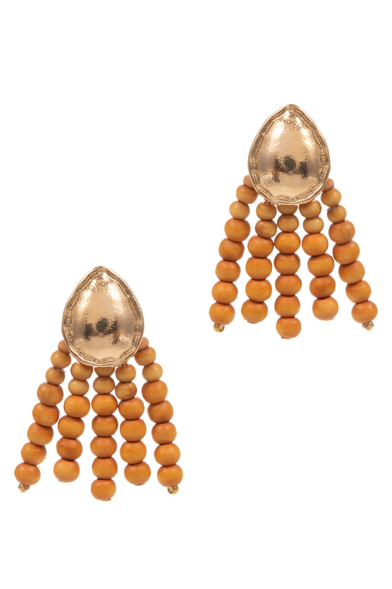 Irregular Shaped Wood Beads Post Earrings