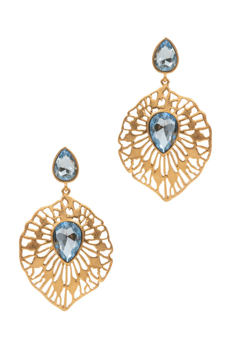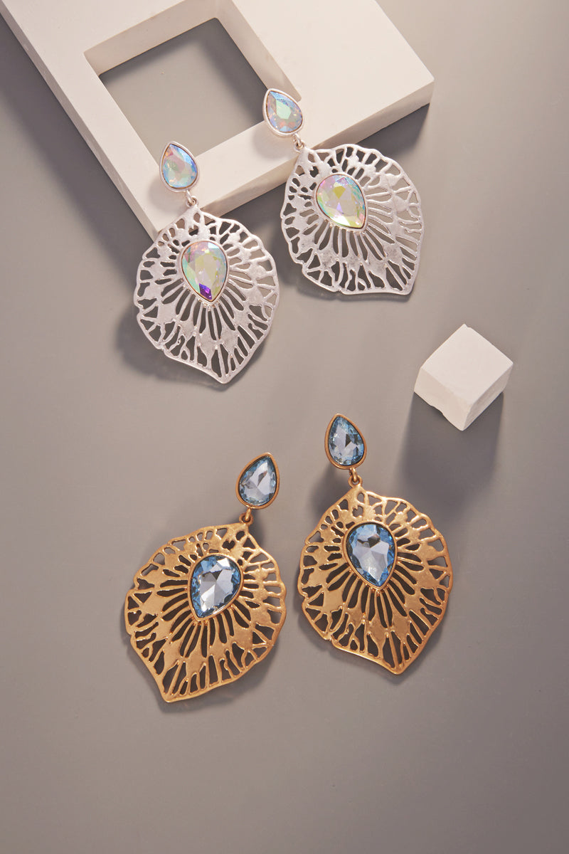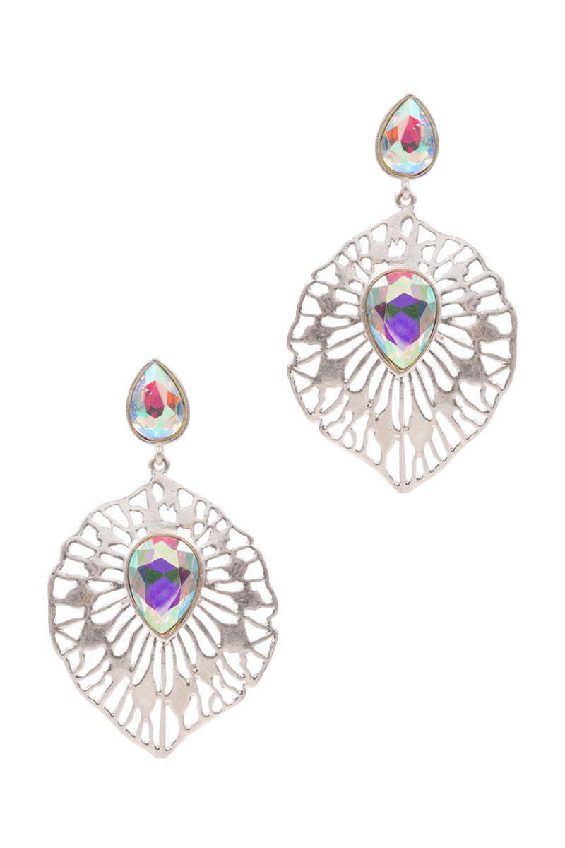 Laef Shaped Drop Epoxy Rhine Stone Post Earrings