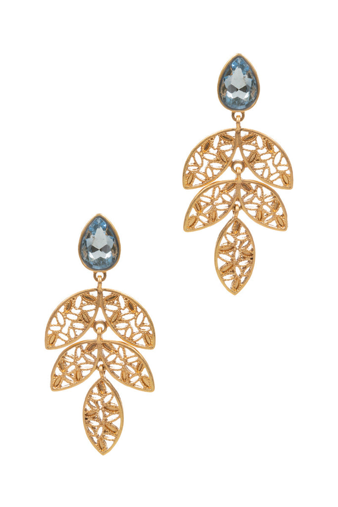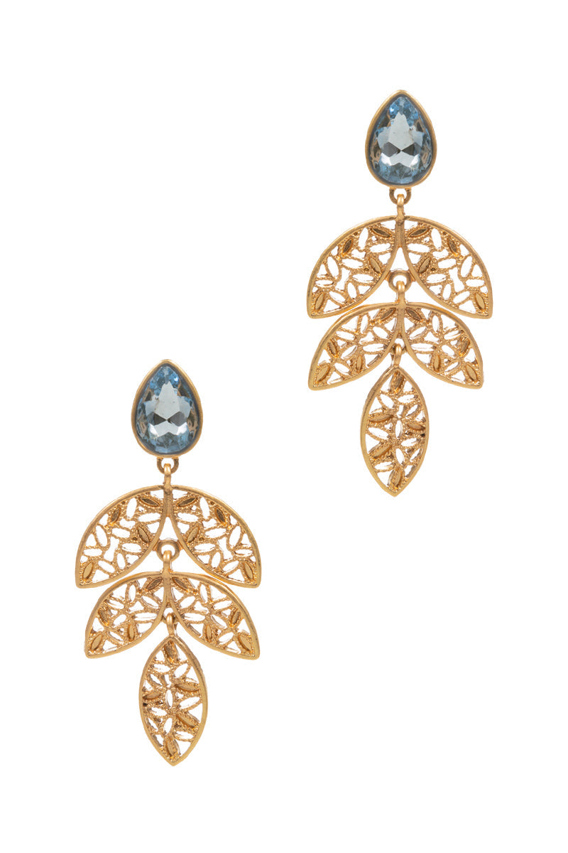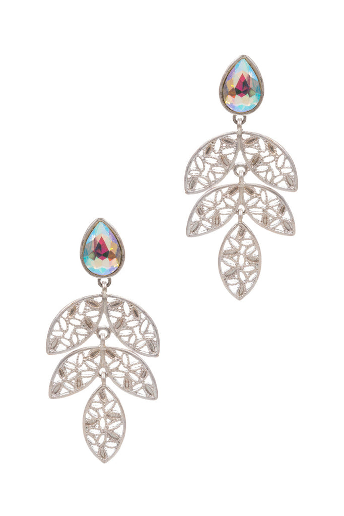 Leaf Shaped Epoxy Rhine Stone Post Earrings
