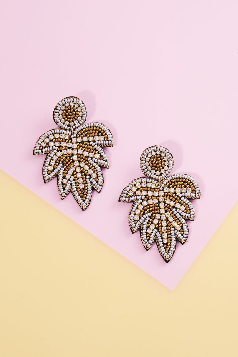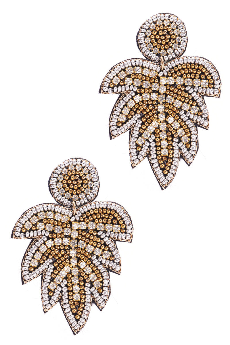 Leaf Shaped India Beads Post Earrings