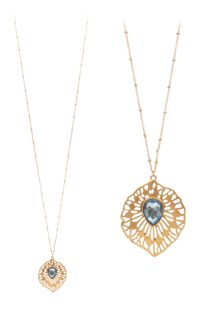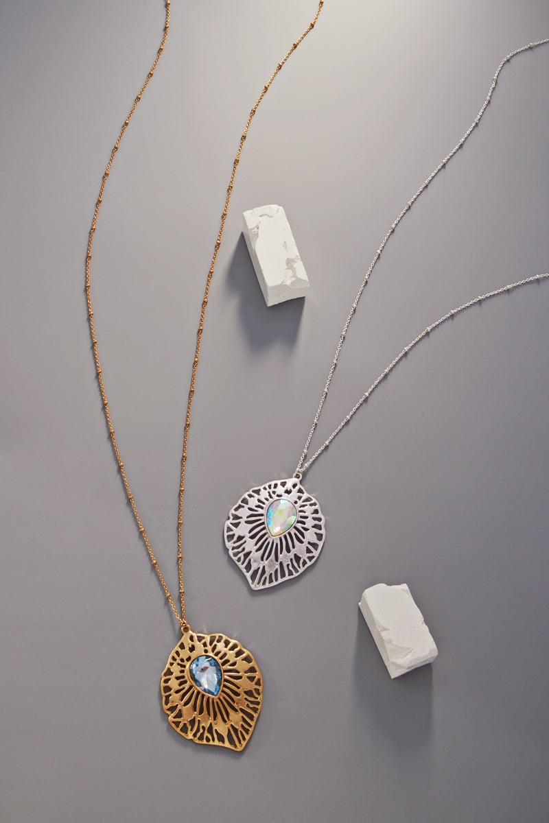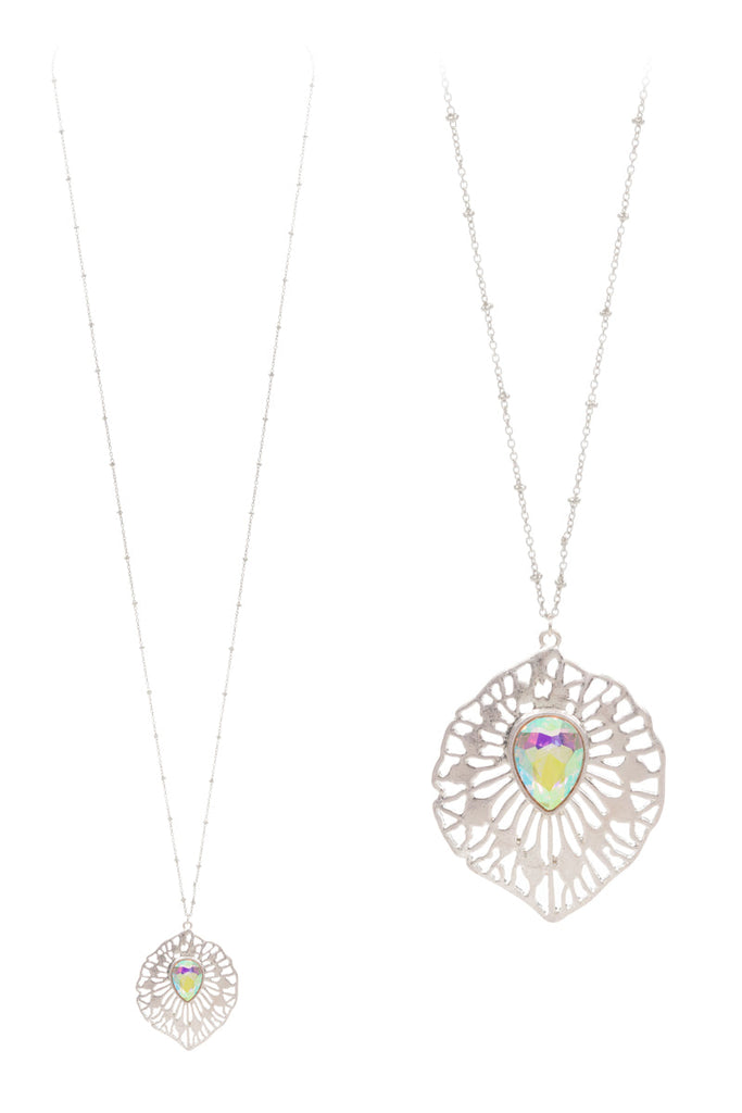 Leaf Vintage Filigree Rhine Stone Long Necklace